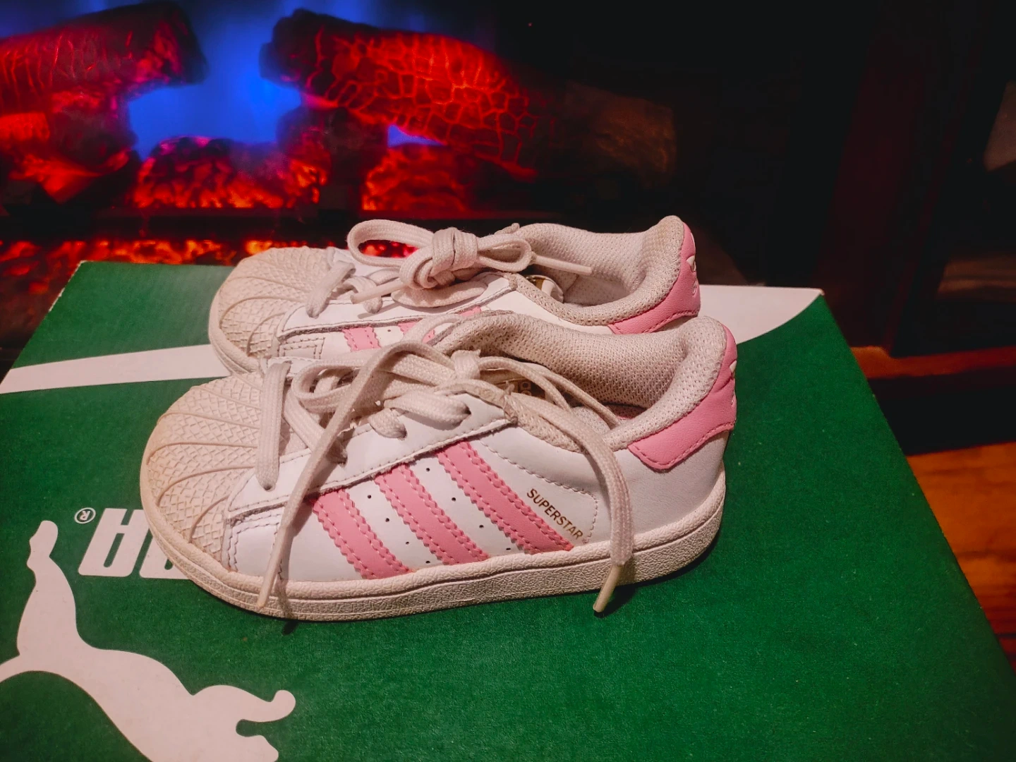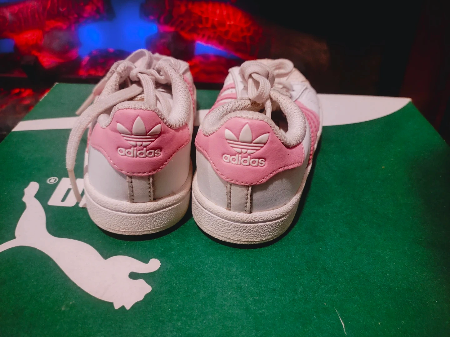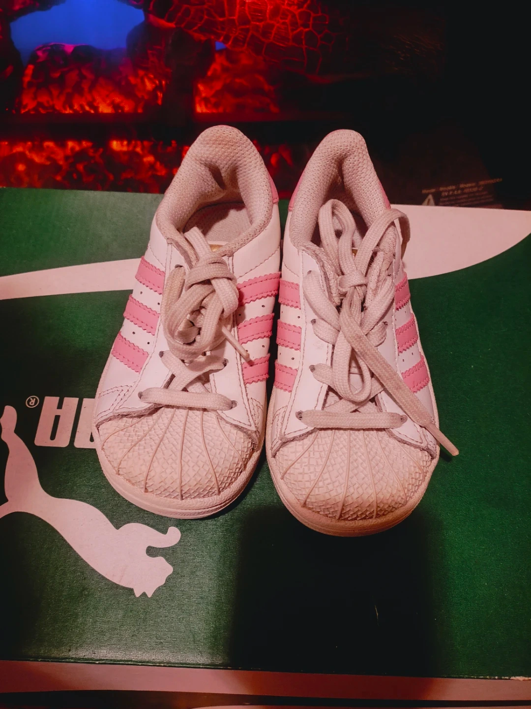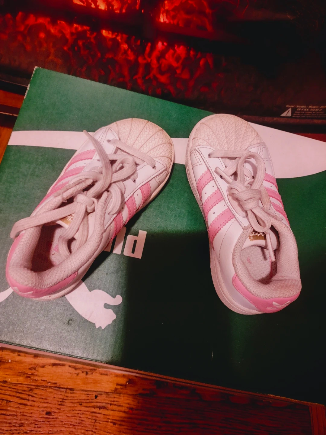 Girls Adidas Superstar Toddler Shoes White Pink size 7K used