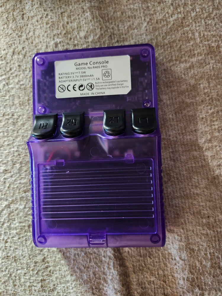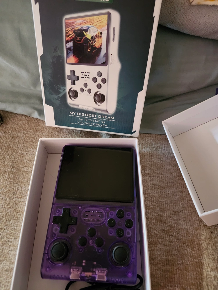 Selling a Palm Games R40S Pro handheld console in purple! It comes with its original box. Key specs: -Linux OS 2.0 -DDR4L 8 bit RAM -3.5-inch IPS Screen -3800mAh battery