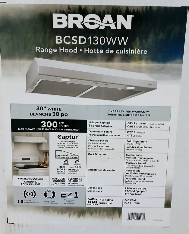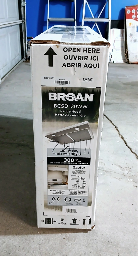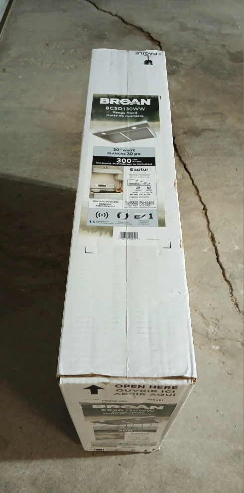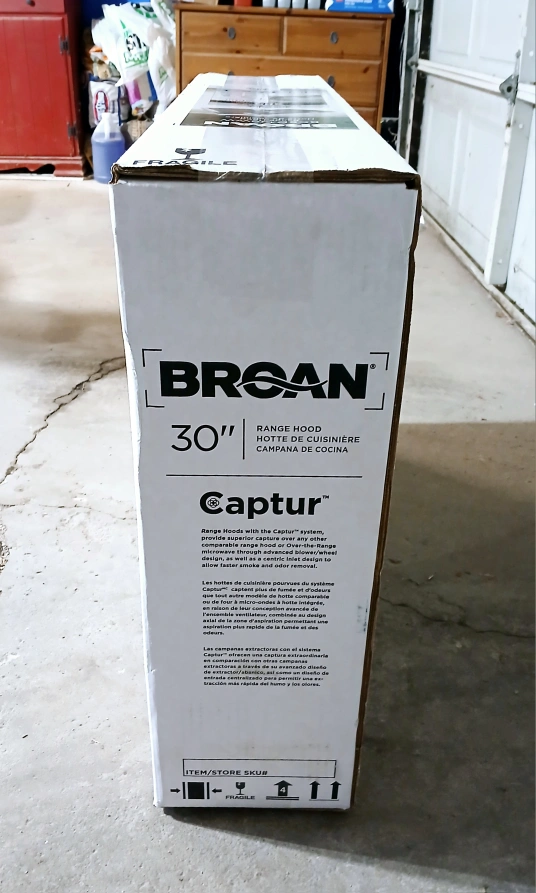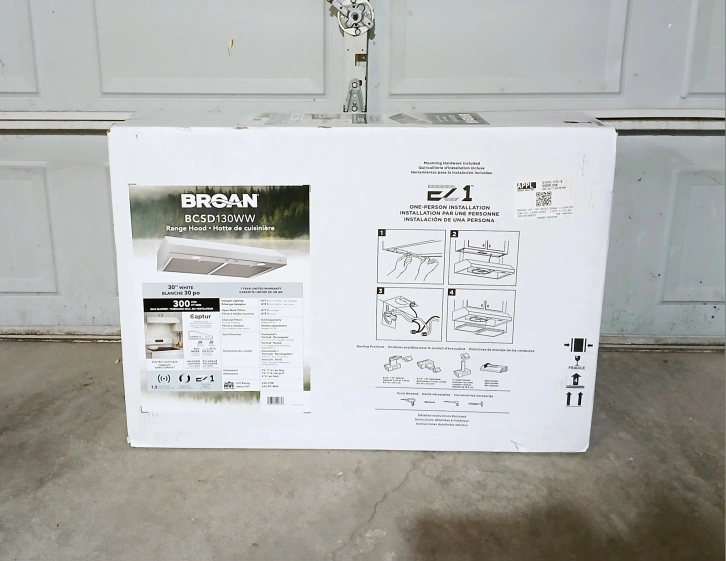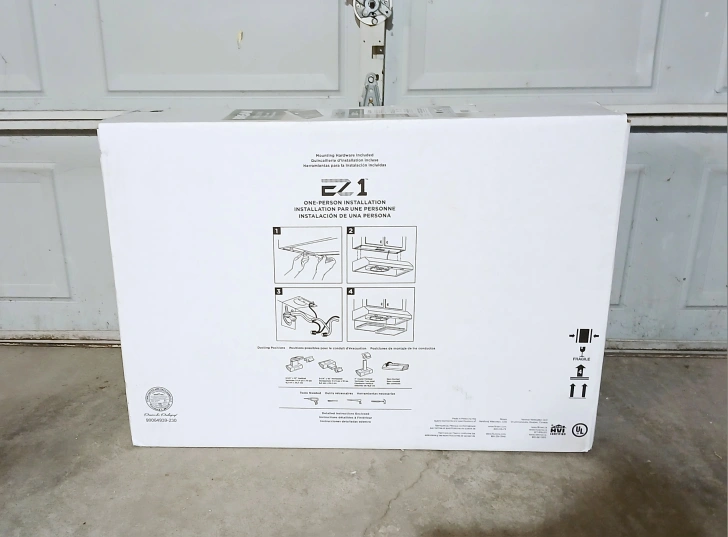 The box includes mounting hardware and installation instructions, making it easy for one-person installation. Dimensions are approximately 29.75" wide x 19.75" deep x 5.5" high.
