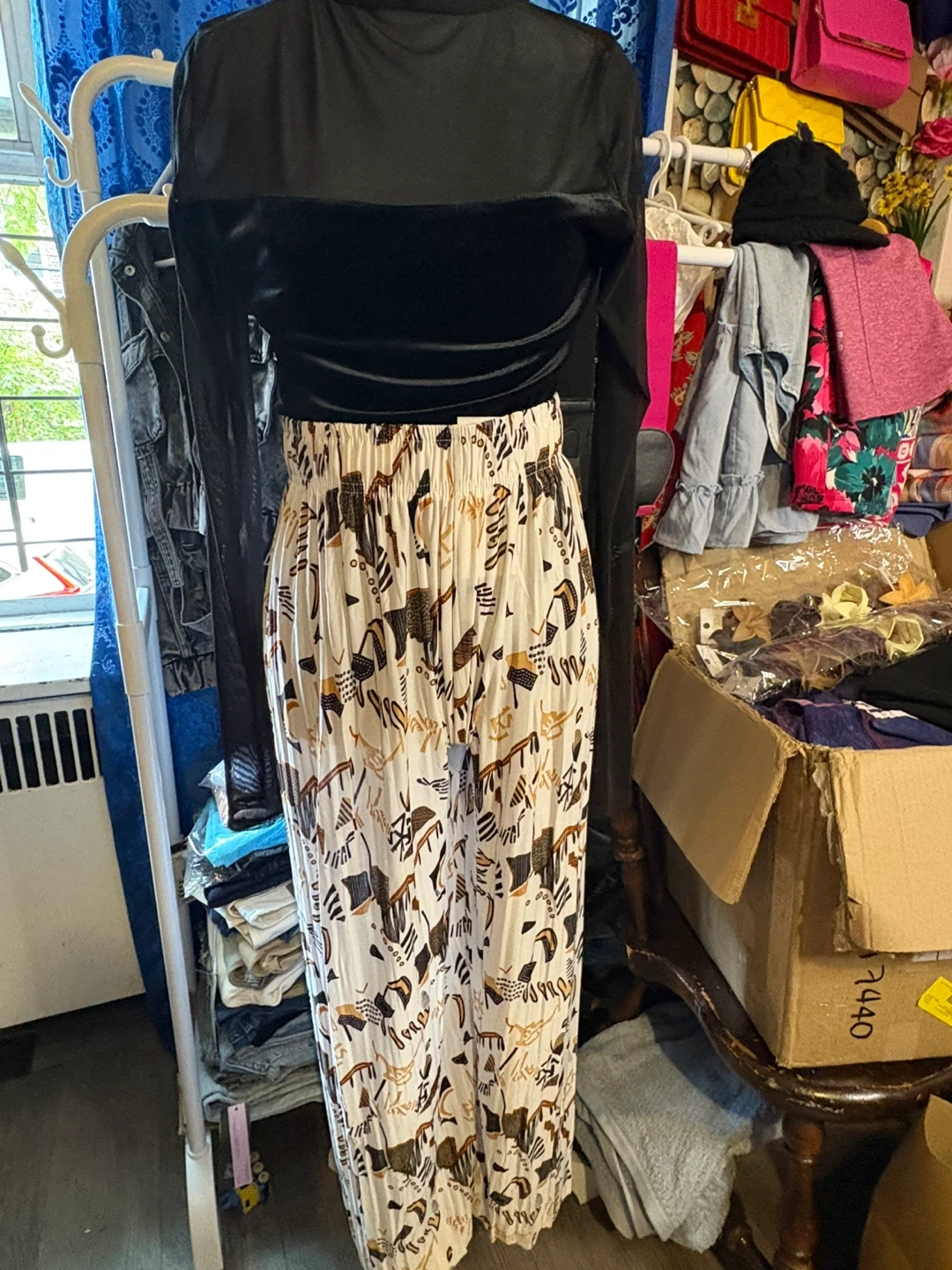 These palazzo pants feature a unique pattern and a comfortable, flowy fit. They are perfect for a casual day out or dressing up for a special occasion. The pants have an elastic waistband for added comfort. They are in great condition and ready for a new home