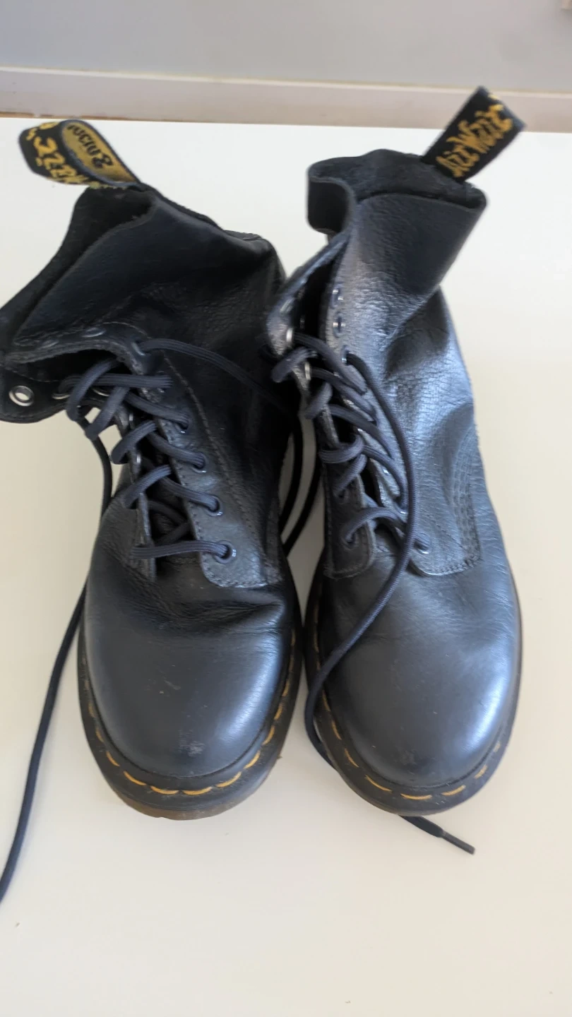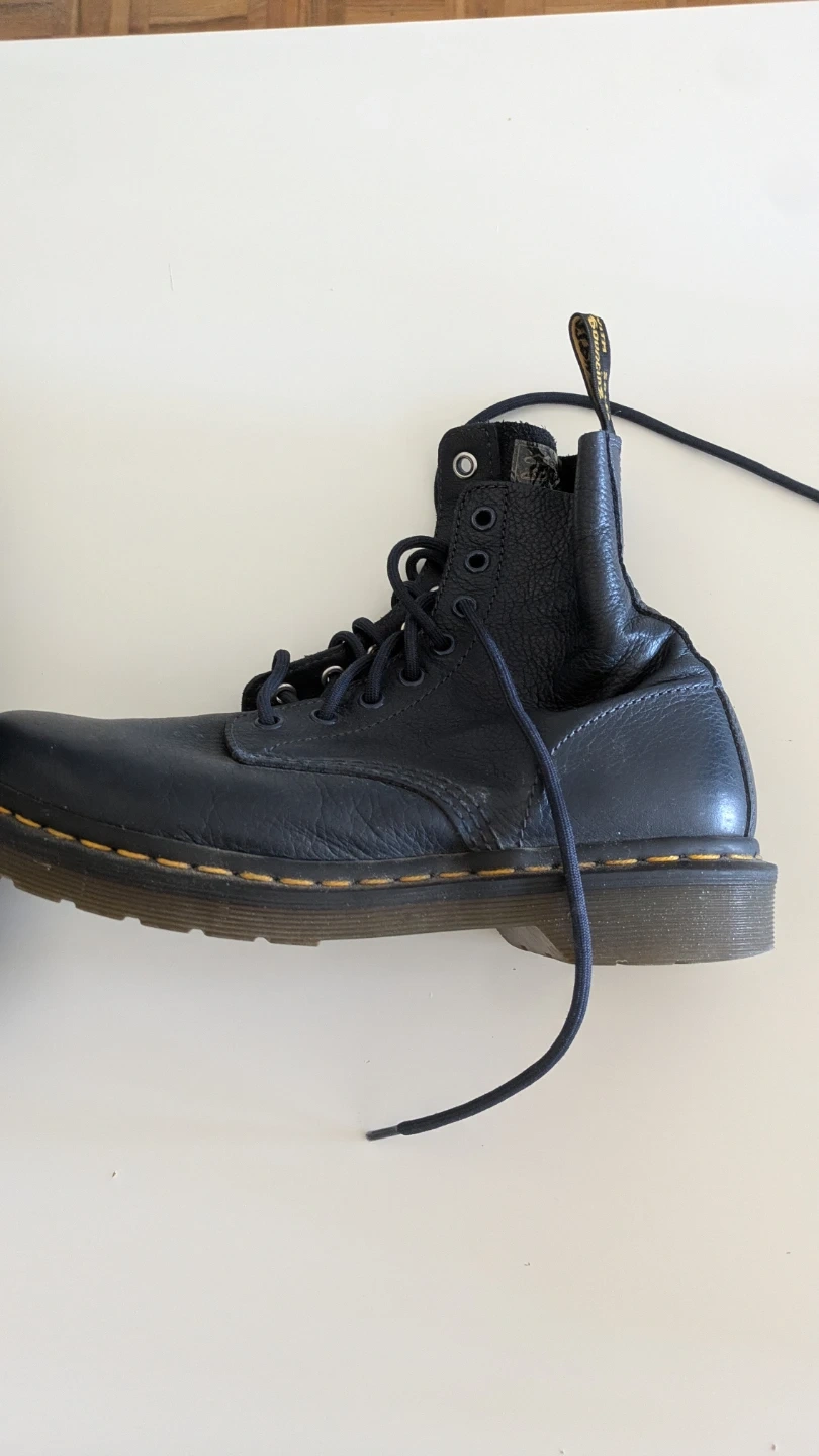Classic Dr. Martens 1460 Pascal boots in black leather. Women's US size 8 (UK 6, EU 39). Durable and iconic footwear. These boots are made for walking!