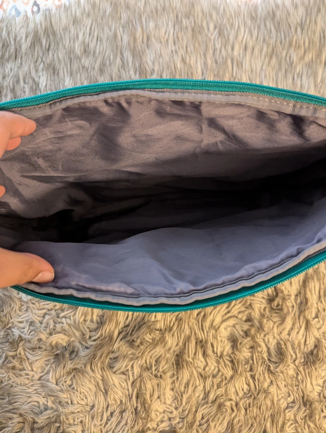 Selling a Teal Laptop Sleeve that can hold up an 18" laptop with no problems. Also offers another zipper that you can put your mouse, charger, etc. Only $10, offers accepted! Very lightly used. Pickup starts in FEBRUARY.