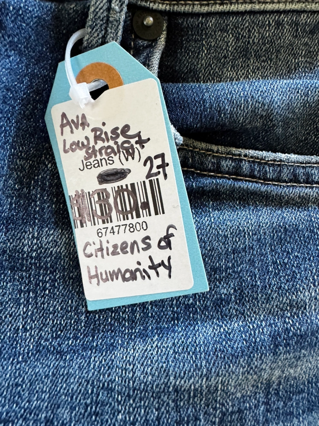 Citizens of Humanity Ava Low Rise Straight Jeans - Size 27