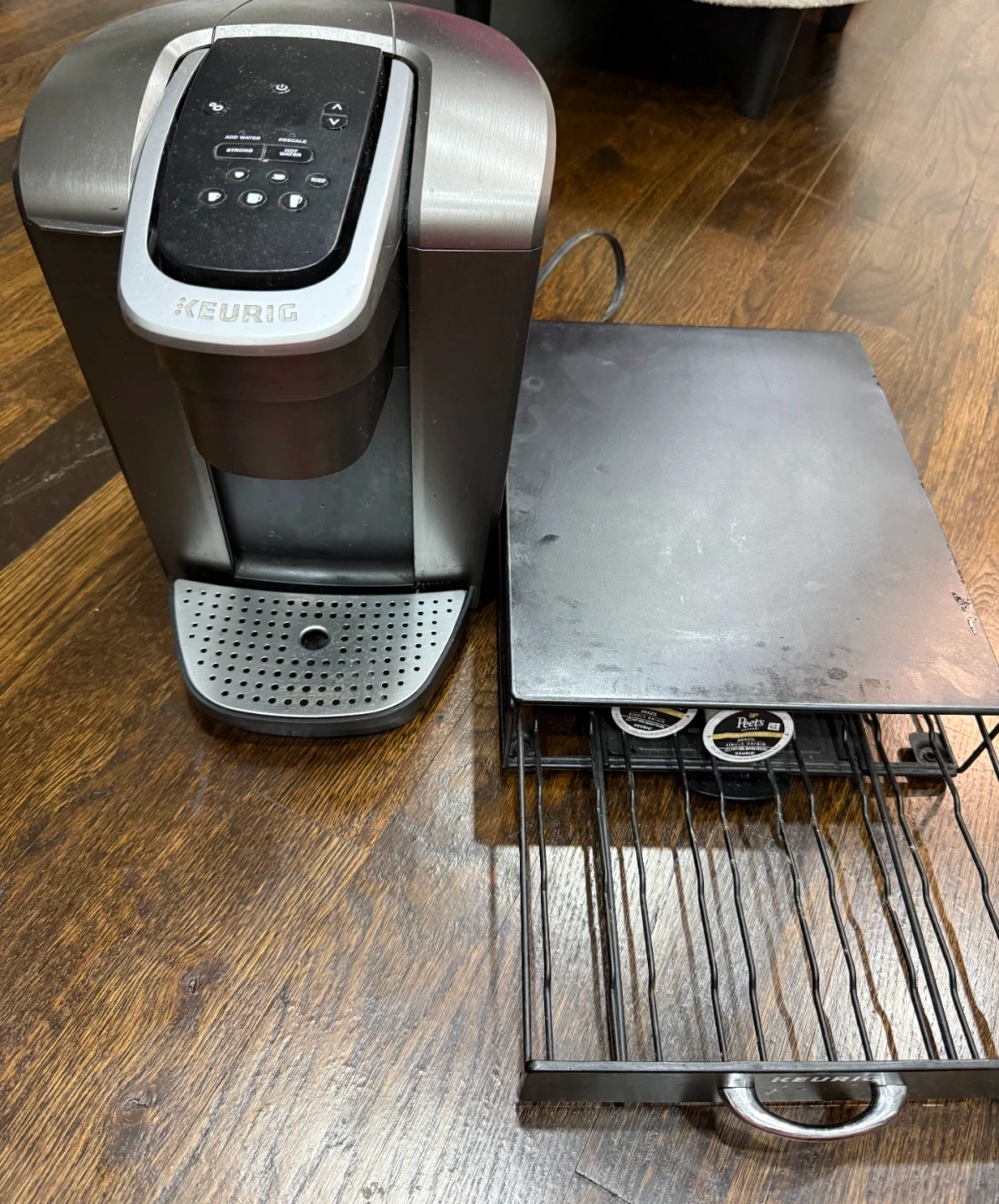 Selling a Keurig coffee maker that's in good condition and ready to use. It comes with a convenient K-Cup holder for easy storage and access to your favorite coffee pods. Perfect for a quick and easy cup of coffee anytime!