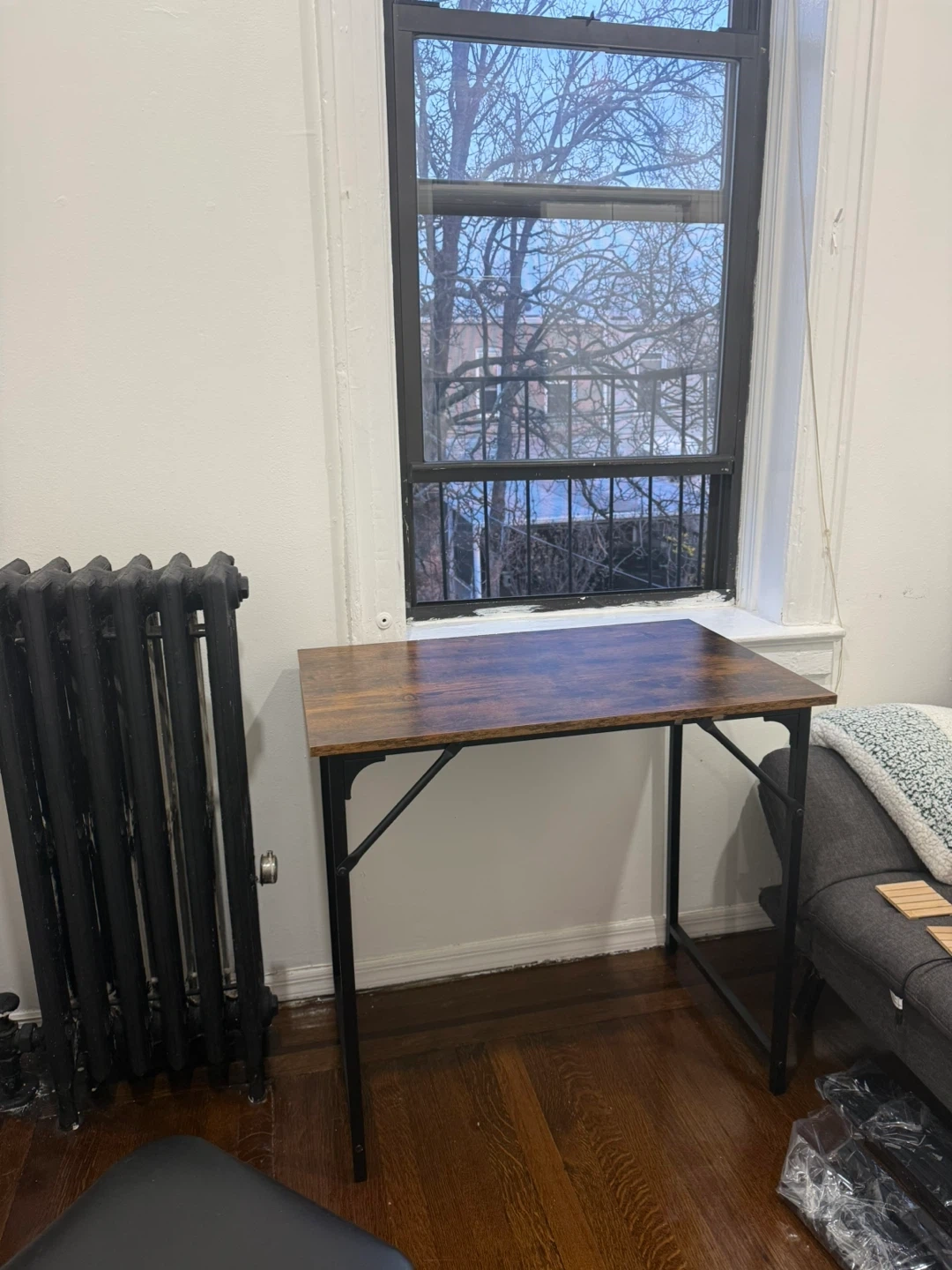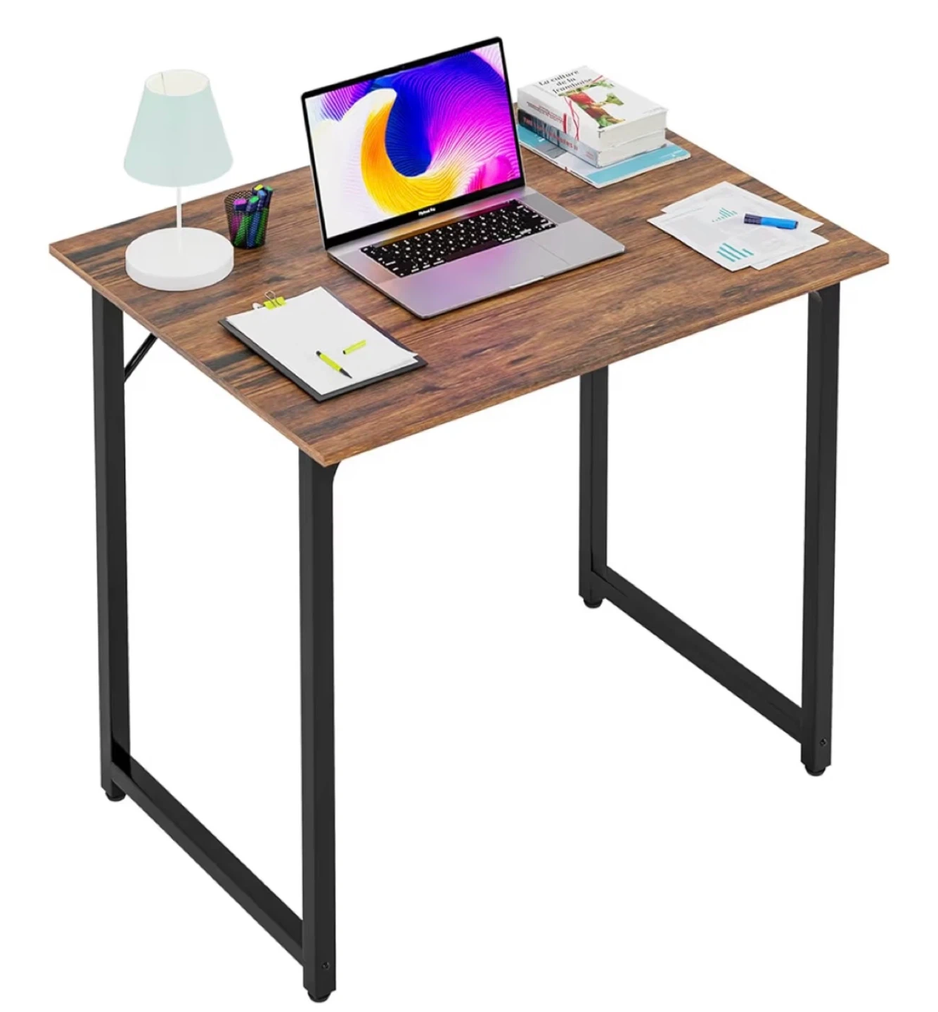 Perfect for small spaces and works well as a laptop desk or a simple workstation.