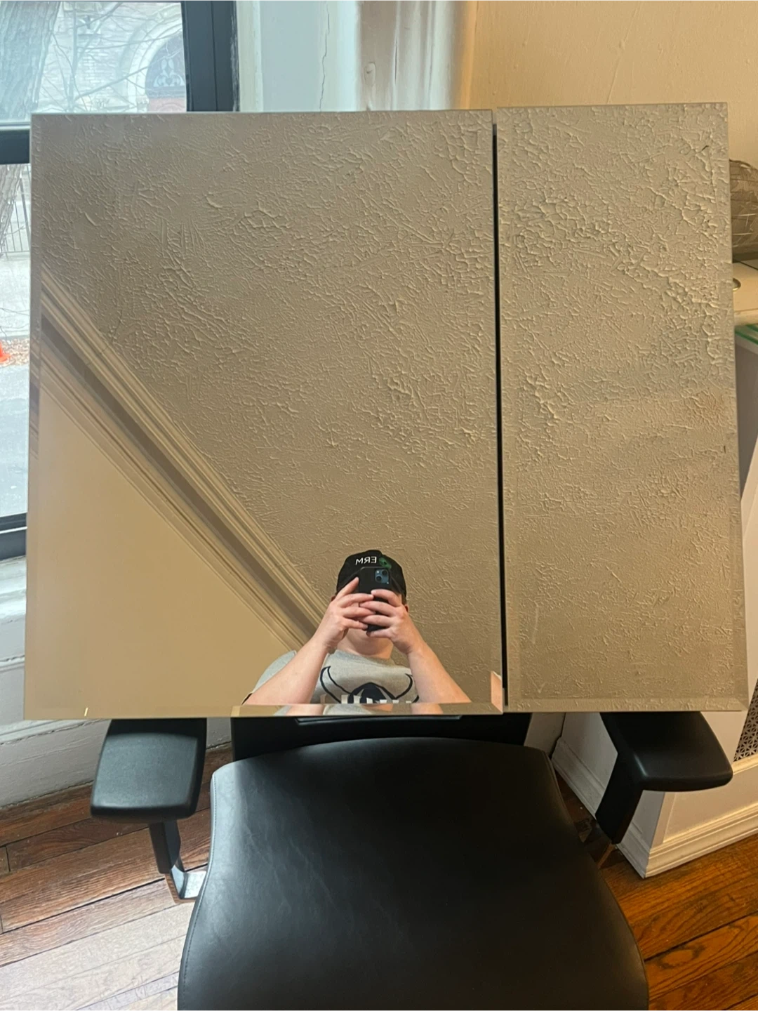 This mirrored medicine cabinet features two doors that open to a full mirrored inside with two glass shelves. It's constructed with a durable metal frame and dimensions are 30” W x 26” H x 5” D