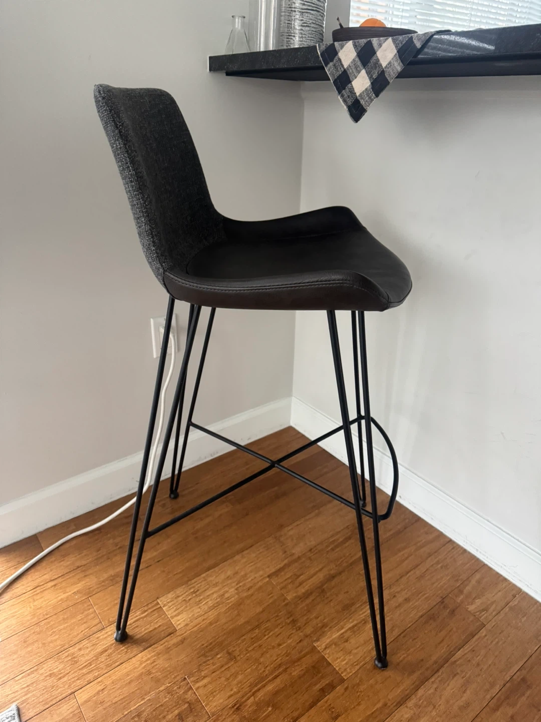 Dark Grey Fabric and Black Faux Leather Bar Stool