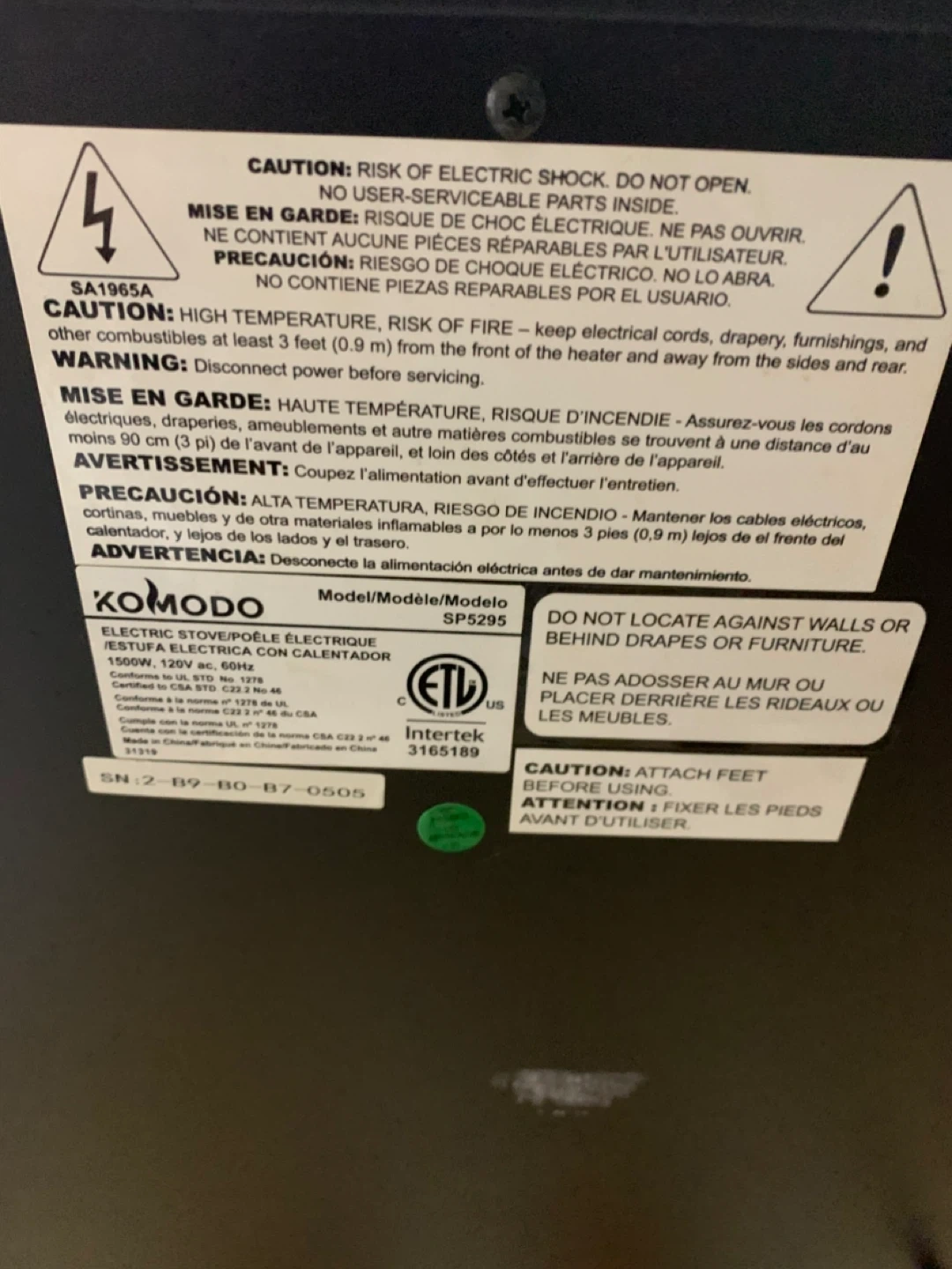 Cozy up your space with this Komodo electric stove/fireplace! The model number is SP5295. It's an electric stove/fireplace that will add a touch of warmth to any room