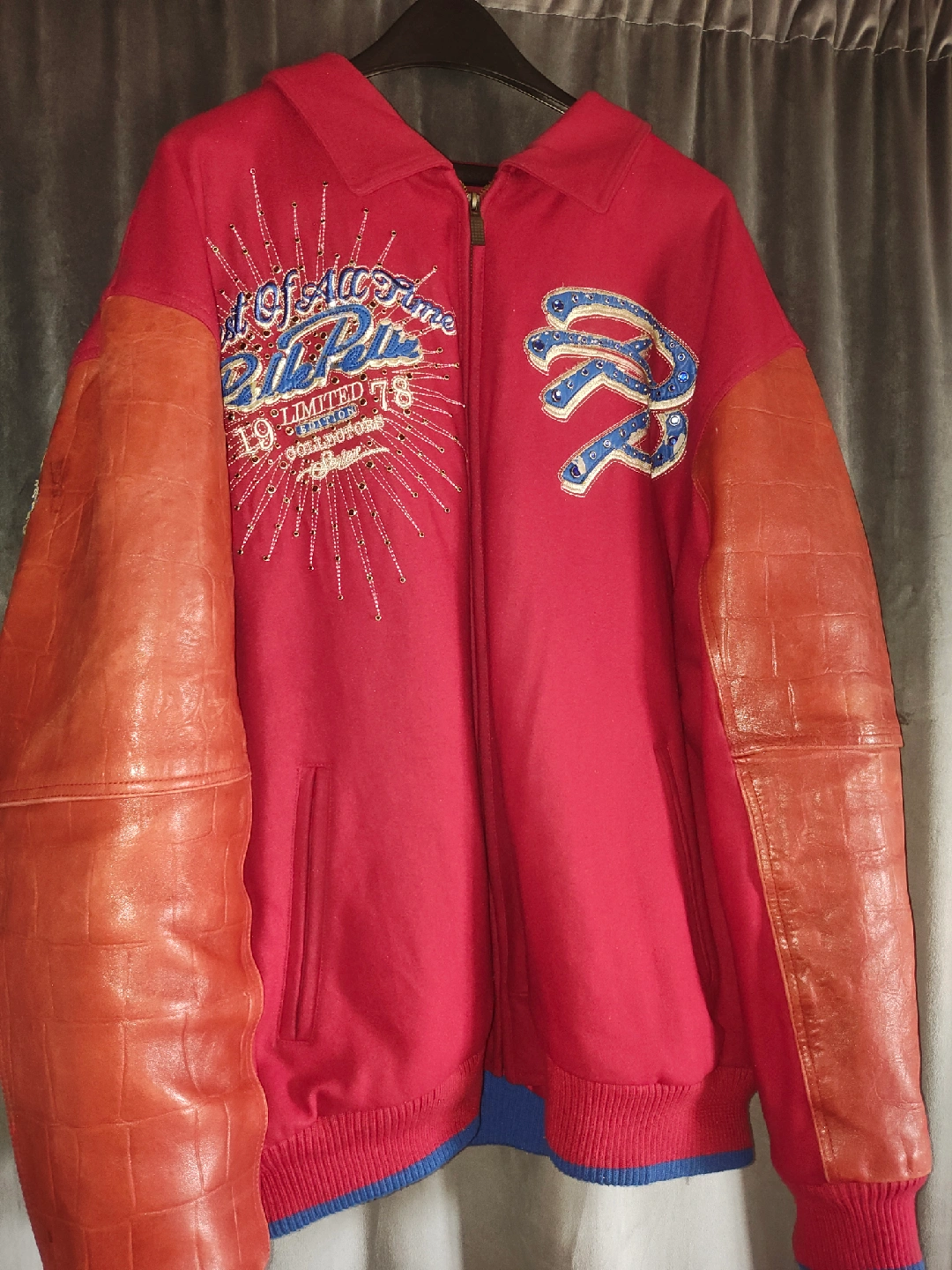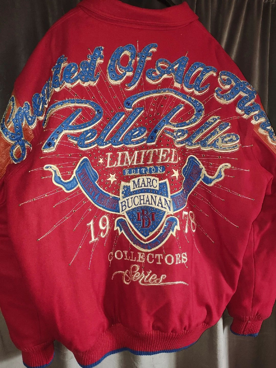 10Selling a Pelle Pelle Marc Buchanan Limited Edition jacket! It's a red jacket with leather sleeves and detailed embroidery on the front and back. Great for collectors!