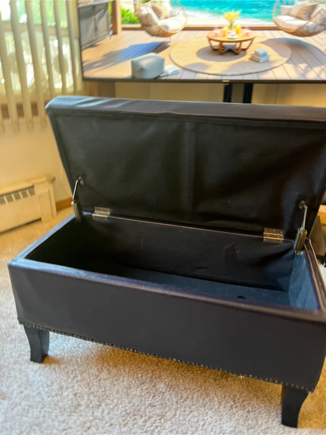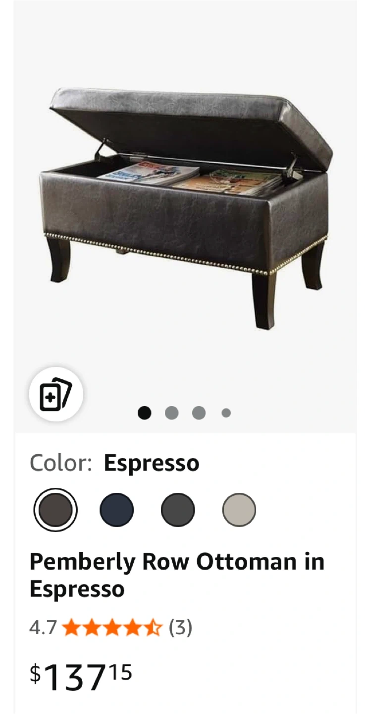 Selling a Pemberly Row Ottoman in Espresso color! It's a stylish and functional piece that can be used as a storage bench or a footrest. Originally bought for $137.15, it's in great condition and ready for a new home
