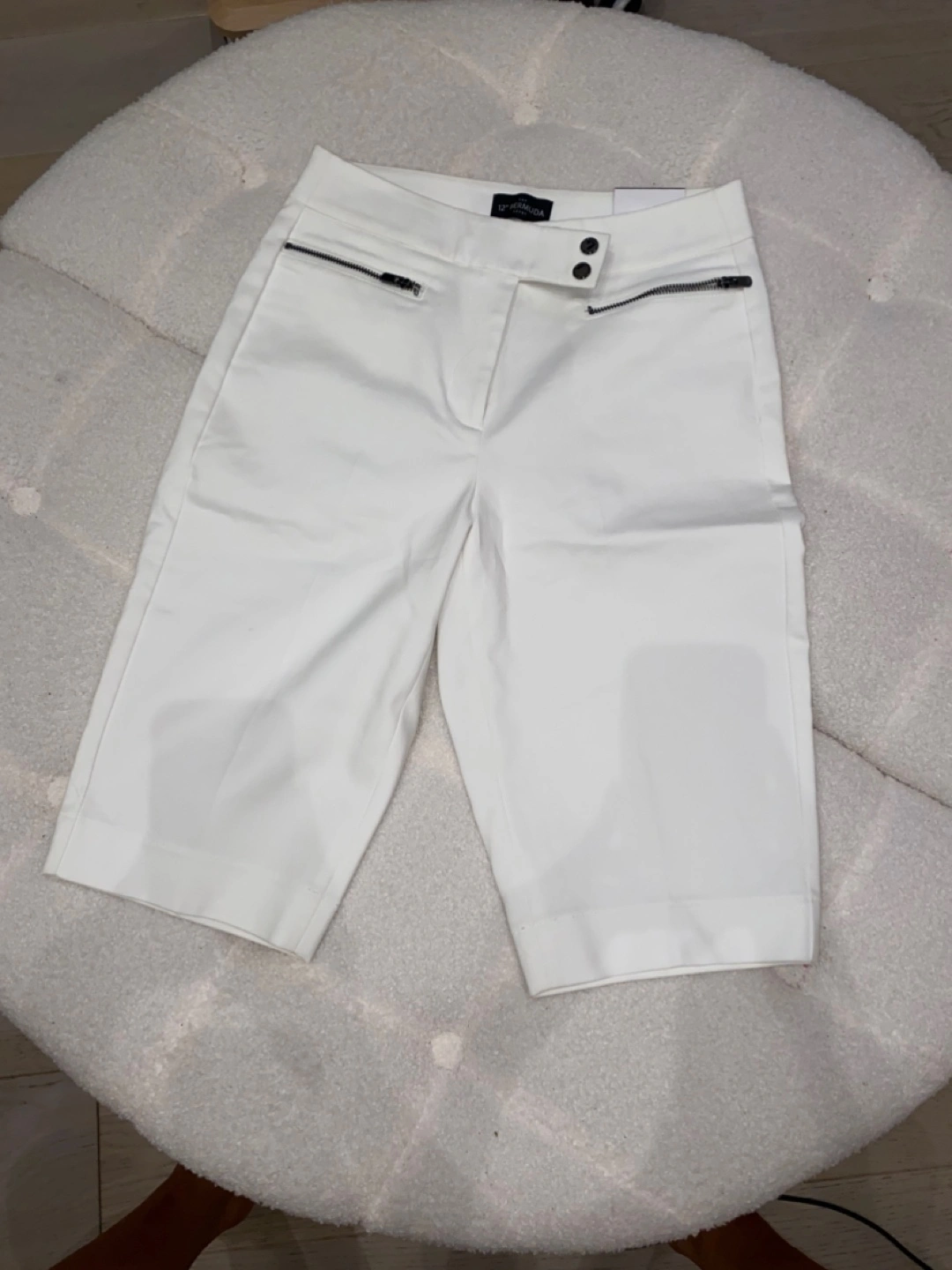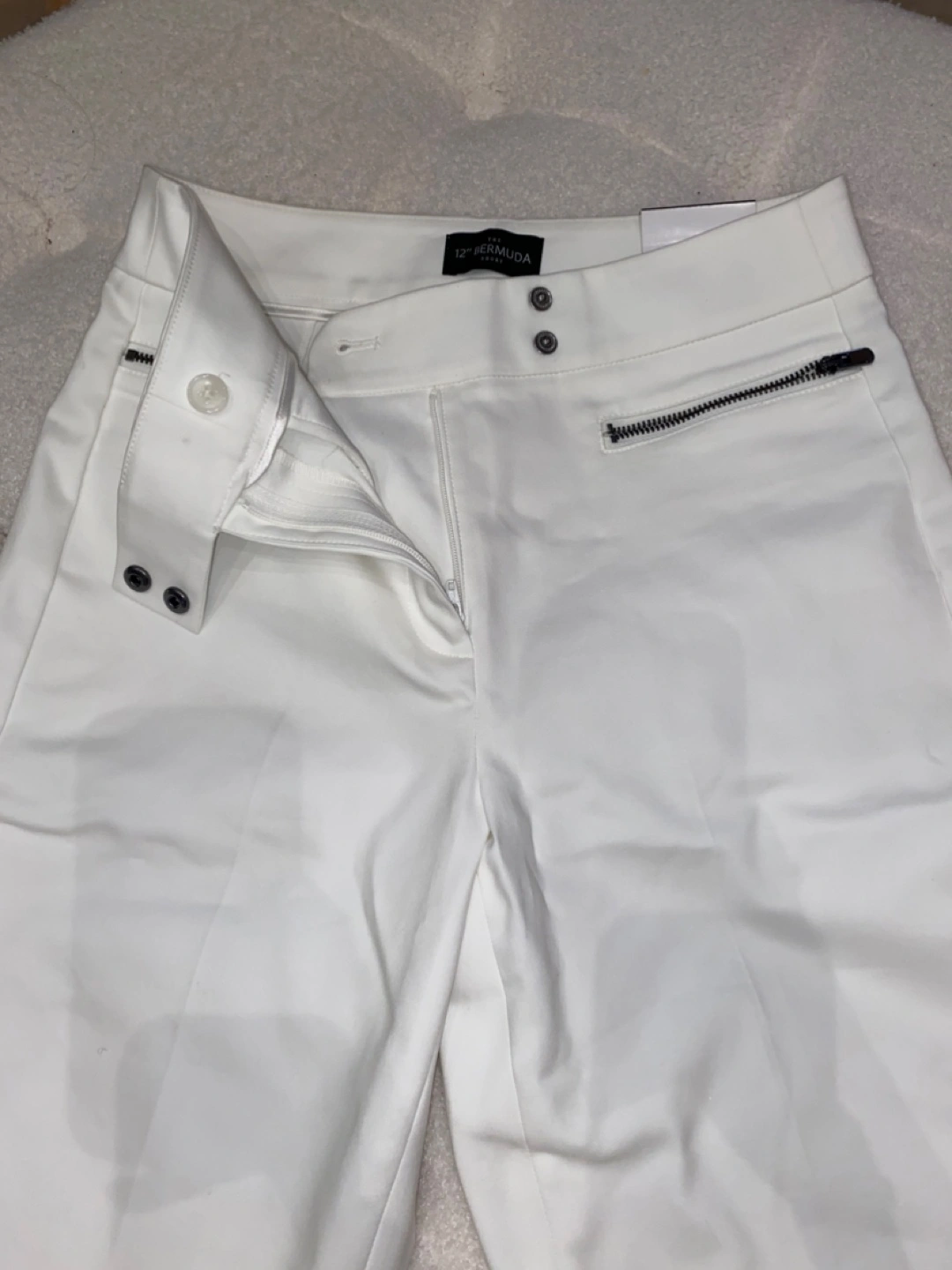 These are a pair of White House Black Market "The 12" Bermuda Short" in size 00. They are in new condition with tags still attached! They are white and feature zipper detailing.