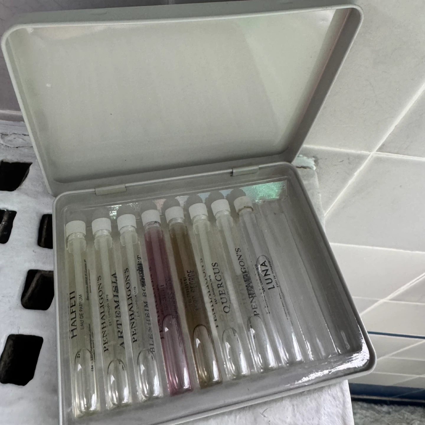 Selling a Penhaligon's Scent Library set! It includes 8 different scents, each in a 2ml size. The set comes in its original box, perfect for trying out a variety of fragrances from Penhaligon's.