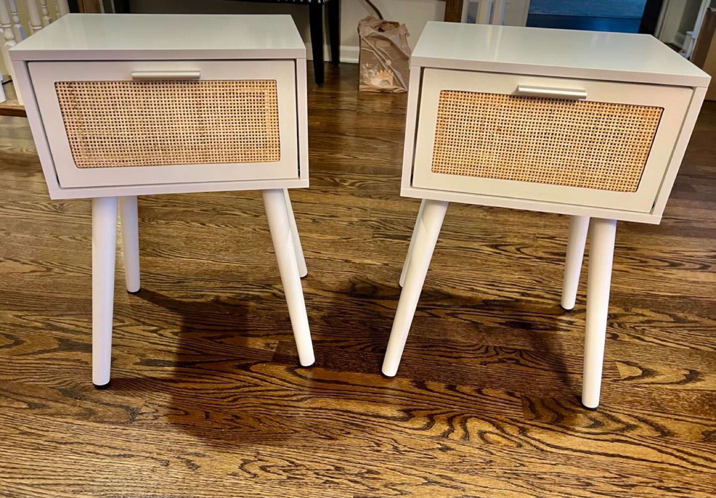 Perfect condition Bedside Table Set of 2, Boho End Table with Solid Wood Feet for Bedroom and Living Room Color: Natural Shape: Rectangular