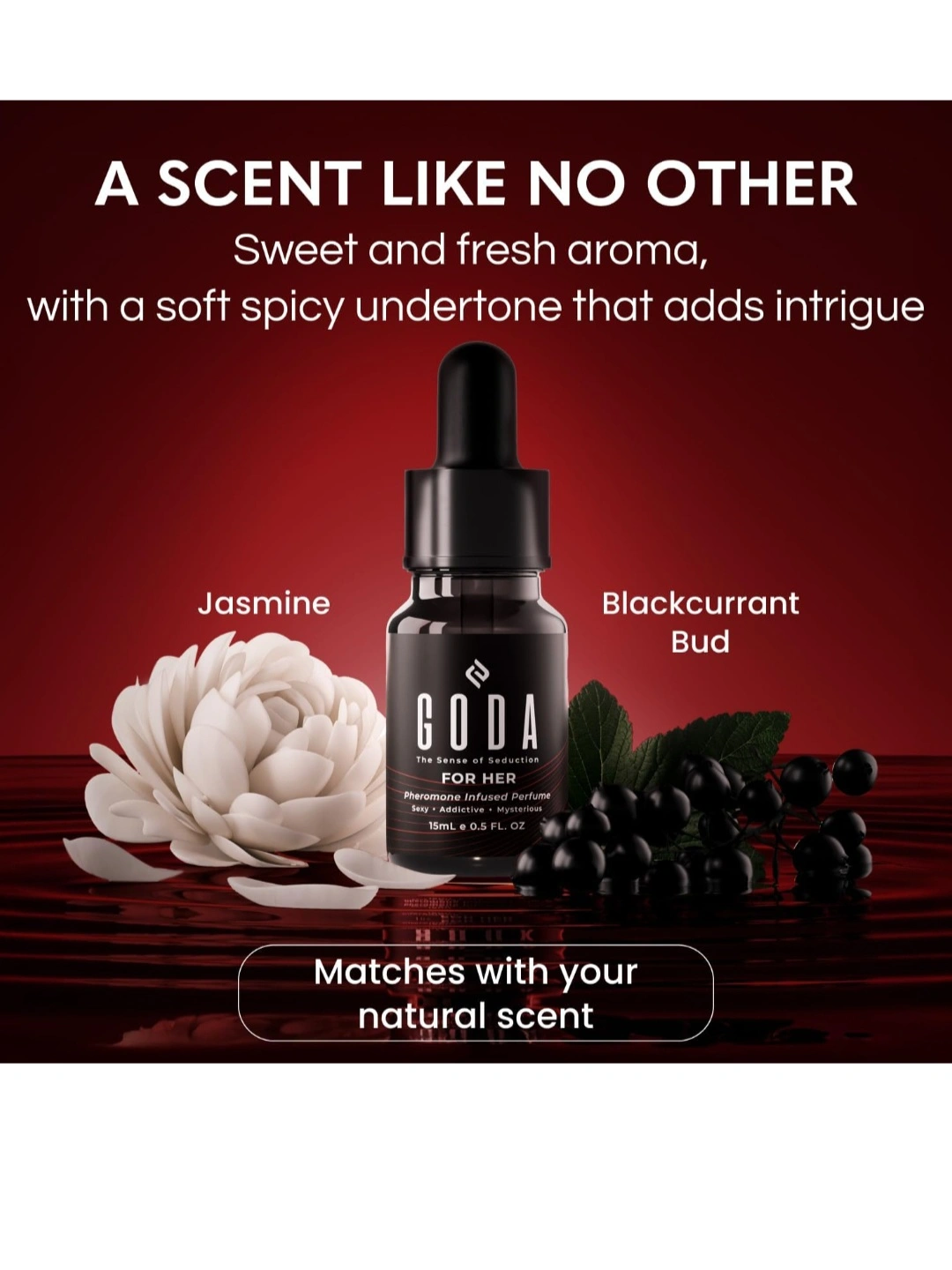 195UNIQUE FORMULA: GODA's irresistible pheromone perfume for women blends with your body chemistry to create a unique, captivating scent. SWEET & SPICY AROMA: Blackcurrant bud, panna cotta, and pink pepper mix with enchanting pheromone scents. This creates a fragrance that is bold and inviting. LONG-LASTING: A delicate blend of jasmine, rose, and peony creates a scent that stays fresh from morning to night. Just 2-3 drops will keep you feeling confident and elegant. VEGAN & SAFE: Our Floral perfume oil is made with ethically sourced, cruelty-free ingredients. Free from parabens and harsh chemicals, perfect for daily wear. TRAVEL SIZE PERFUME: Our long-lasting perfume oil for women comes in a 15ml bottle. It's great for touch-ups when you're on the go. It fits in every small women's bag.