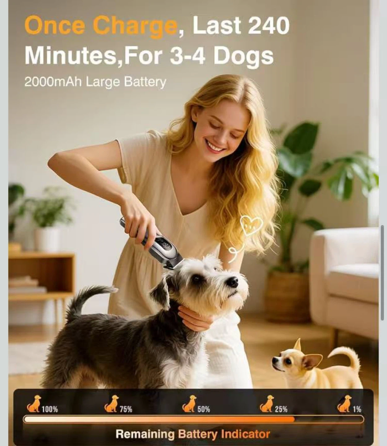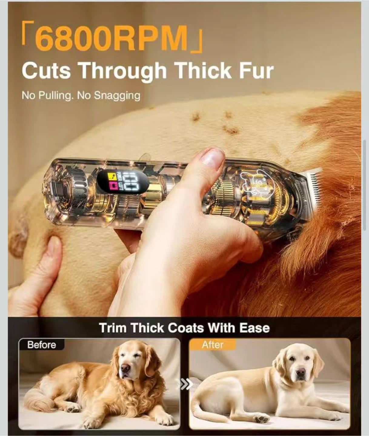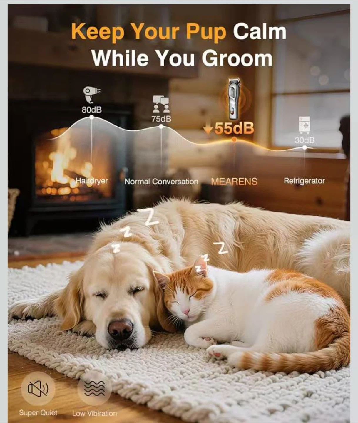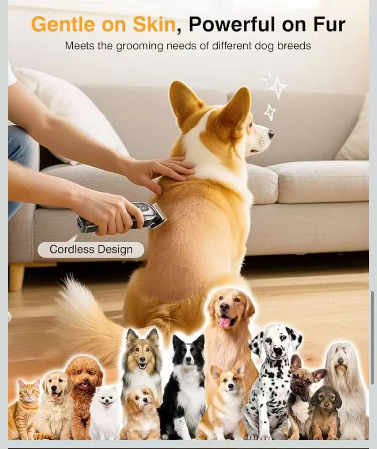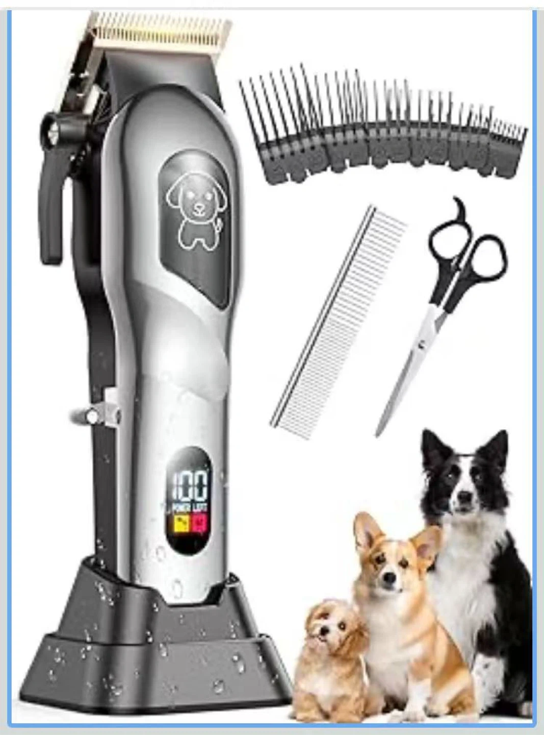 Dog Clippers for Grooming for Heavy Thick Hair, Low Noise Cordless Pet Hair Trimmer with Stainless Steel Blade, Professional Rechargeable Hair Trimmer for Dogs and Cats
