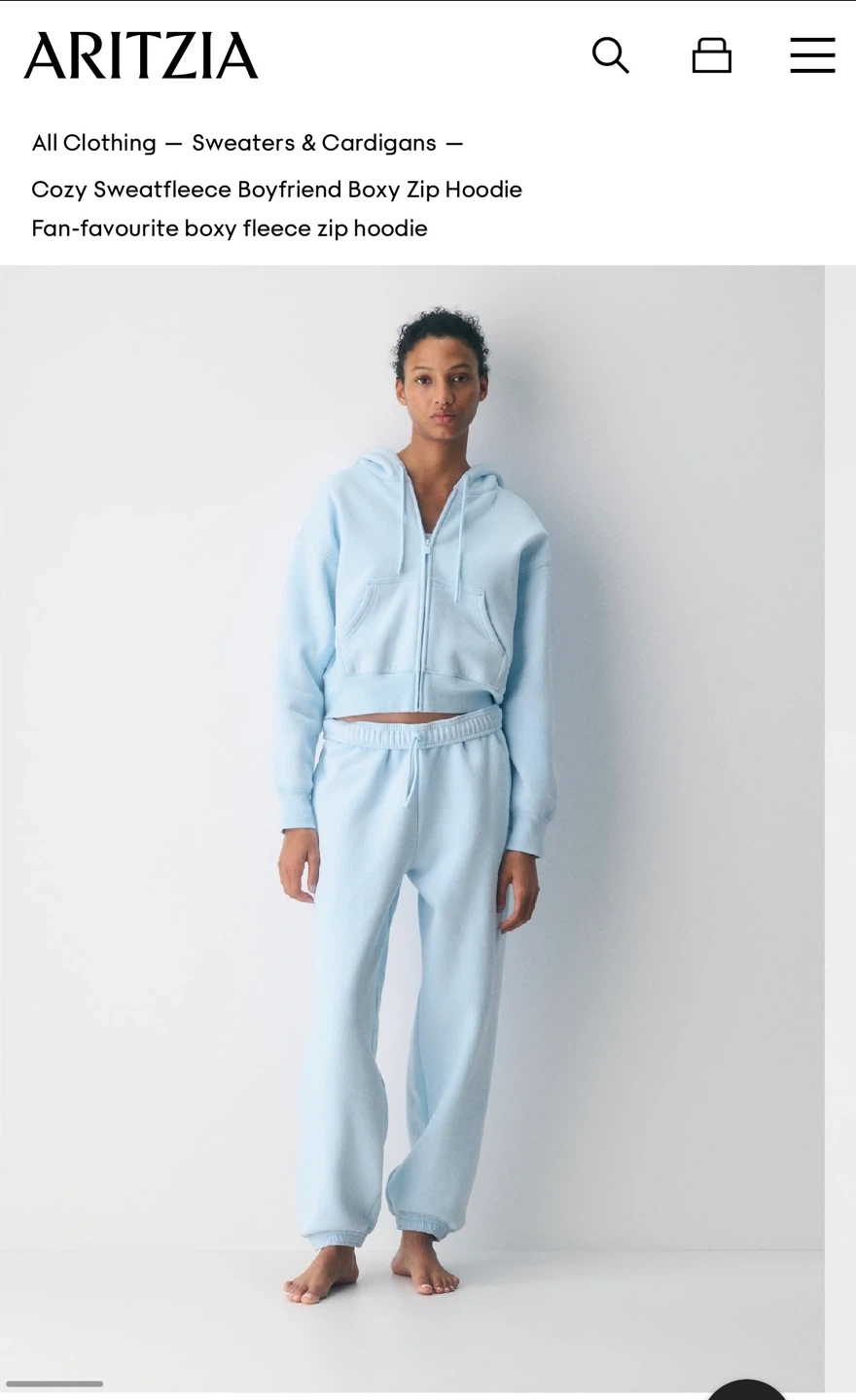 ARITZIA Cozy Sweatfleece Boyfriend Boxy Zip Hoodie Light Blue