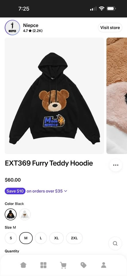 Niepce Furry Teddy Bear Face Hoodie - Size Medium