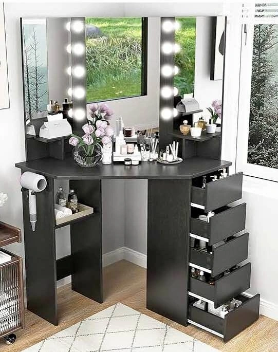 Beauty desk black with Plugged and chair.