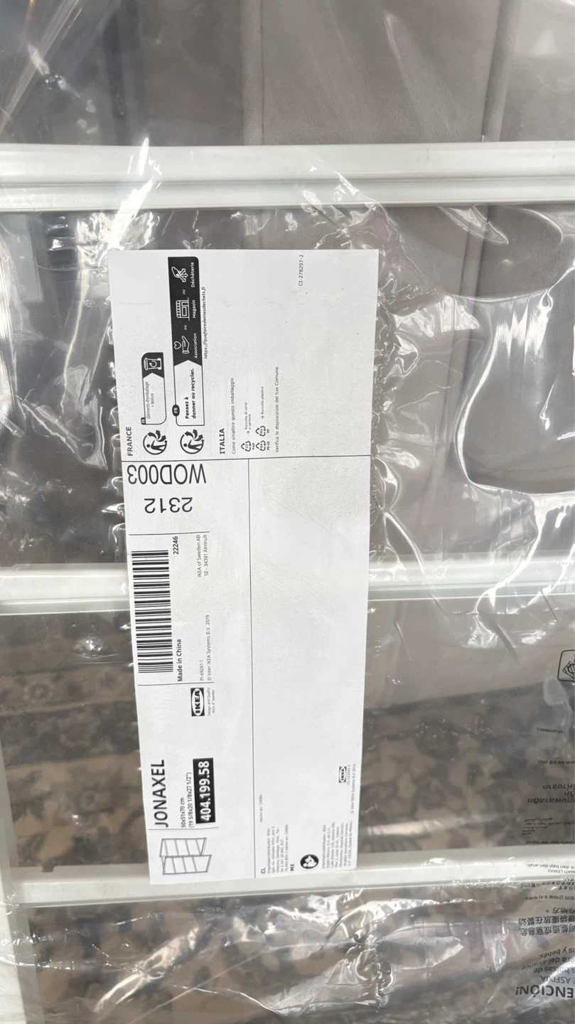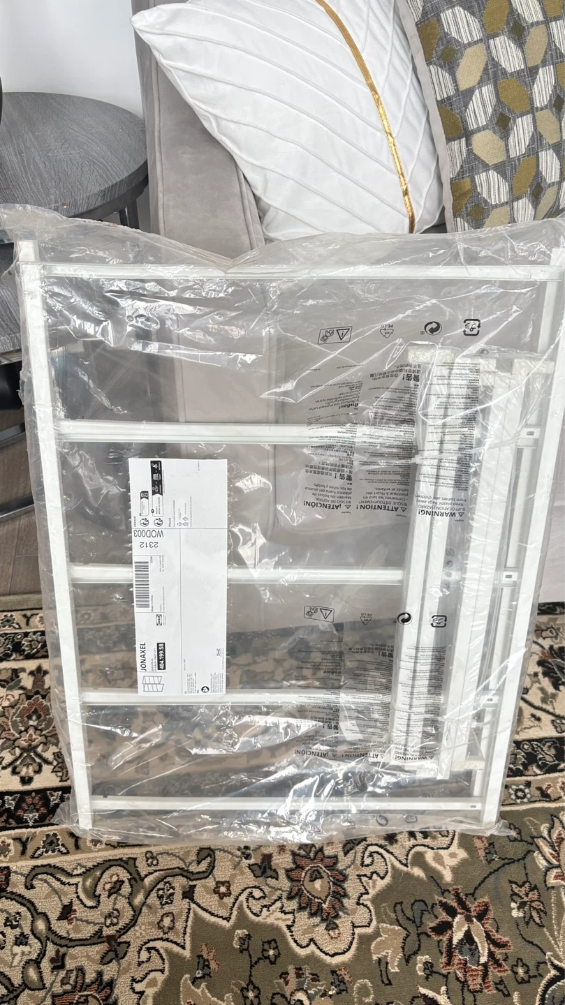 Brand new IKEA JONAXEL shelf unit in white. Dimensions are 50x51x70 cm (19 5/8x20 1/8x27 1/2"). This versatile shelving unit is still in its original packaging. It's great for organizing any room!