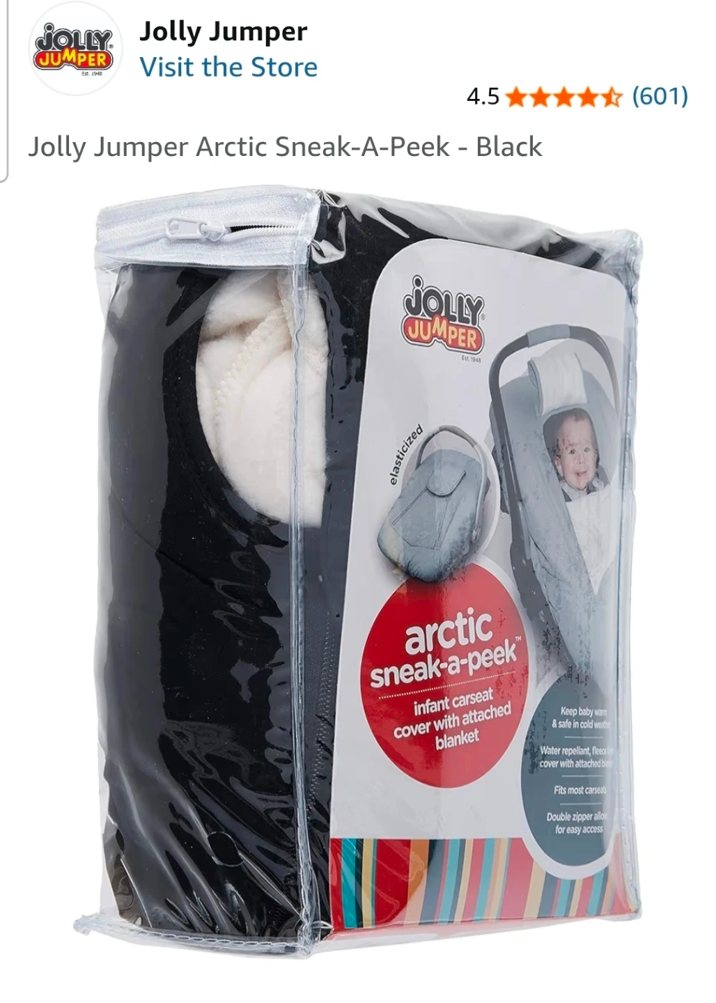 Jolly Jumper Arctic Sneak-A-Peek Infant Car Seat Cover - Black