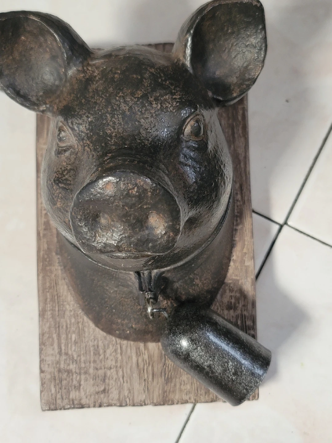 18This is a rustic pig head wall decor piece. It has a dark, weathered finish and comes with a small bell. It's a unique and charming pick up in Merrick Ny CASH ONLY