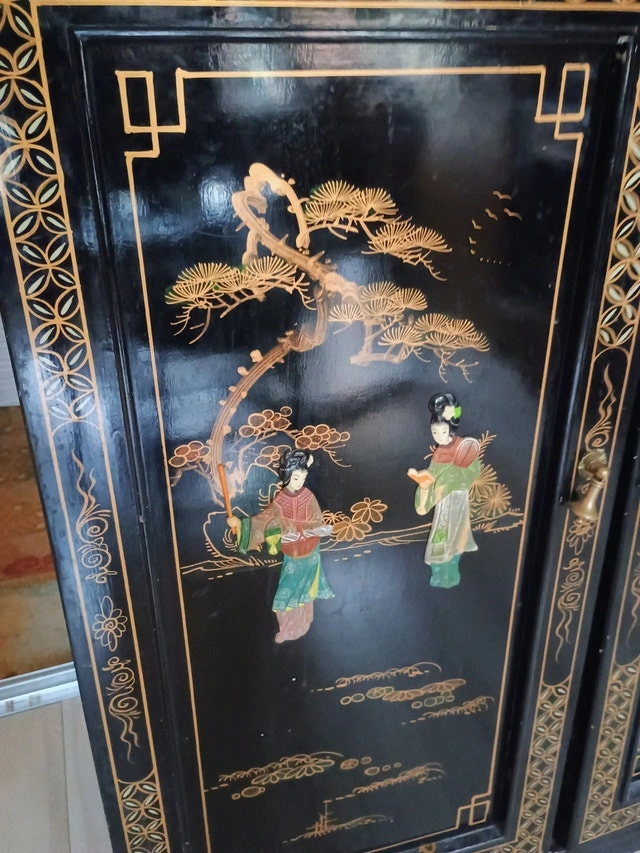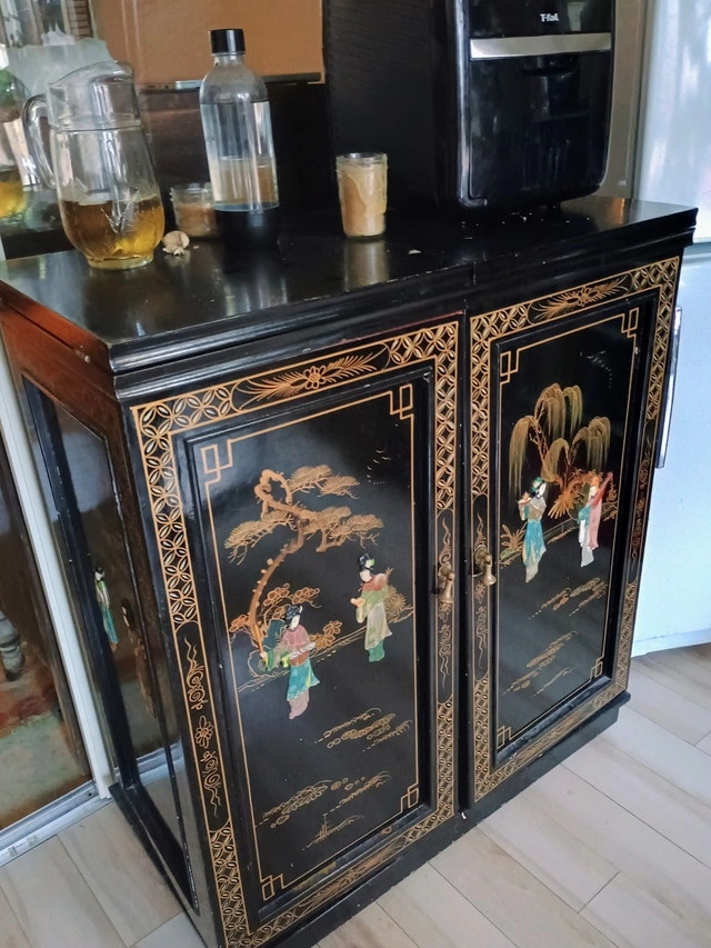 Chinoiserie Rolling Cabinet Bar with Marble Top