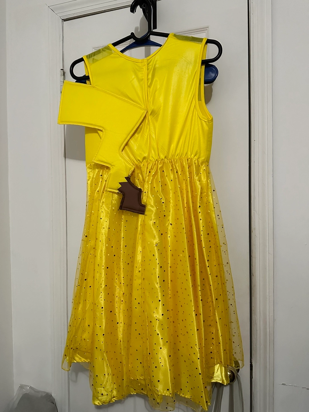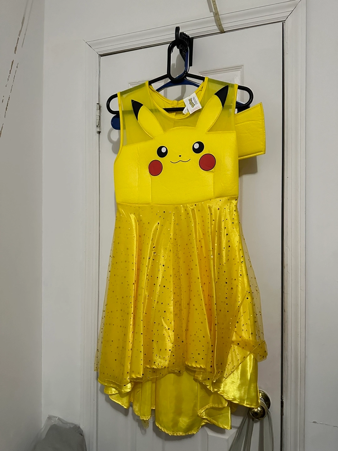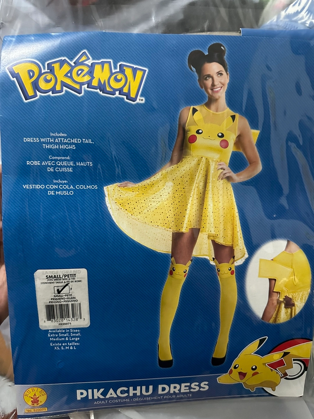 Yellow Pikachu costume dress with attached tail and thigh-highs. Adult size.