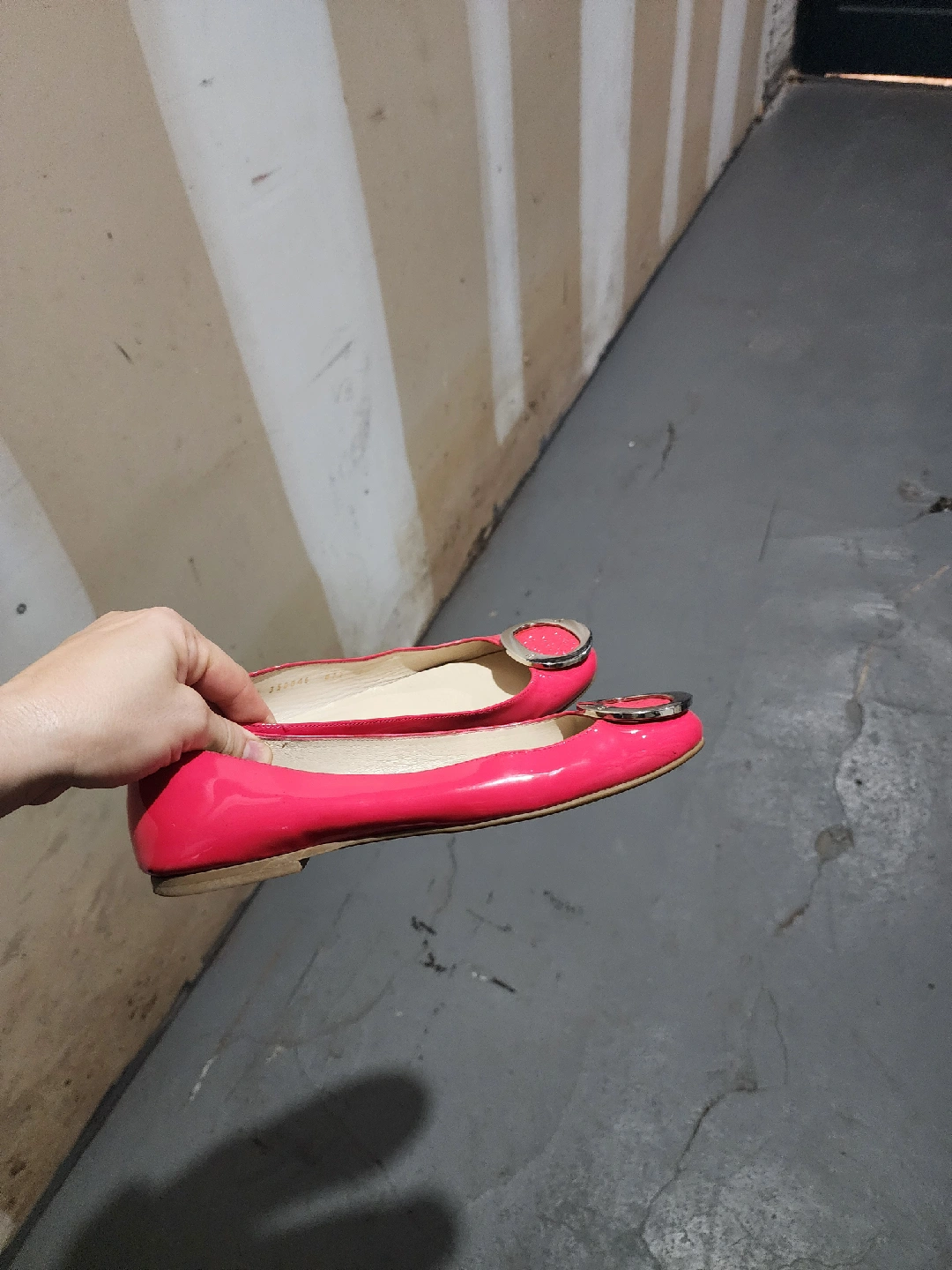 These are a pair of valentino pink flats with a silver buckle detail. They are in good condition and ready for a new home!