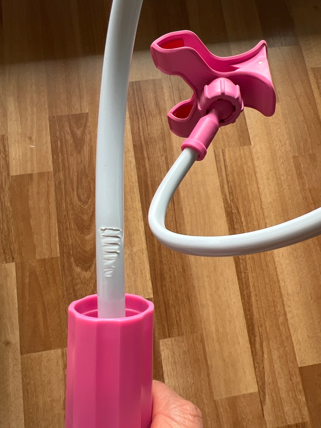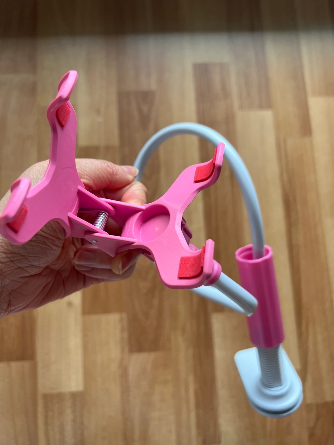 190Only used a few times, no longer need. Slight scratched marks on the arm, but does not affect performance. Cushion pads on the clamp for secure hold. The clamp can rotate 360. Very strong clamp. Clamp at its widest can open up to 3 inches. This should be wide enough for any width of table. Pickup only