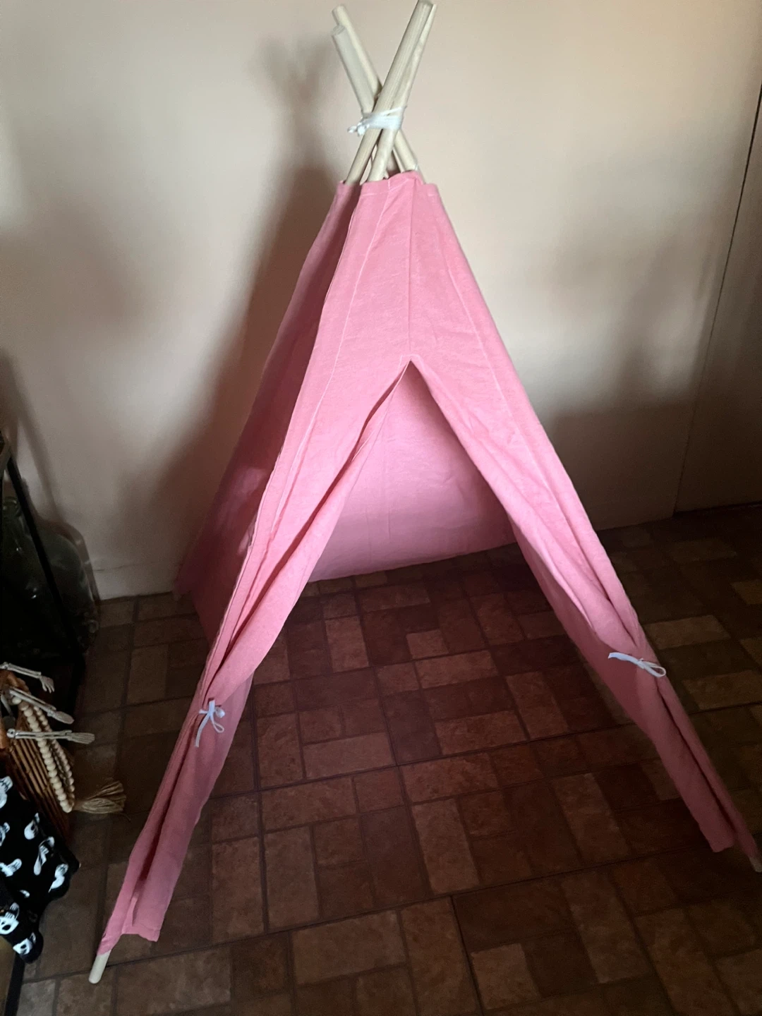 10A cute pink play tent for kids! It's in great condition and ready for a new home. Perfect for indoor or outdoor fun and imaginative play