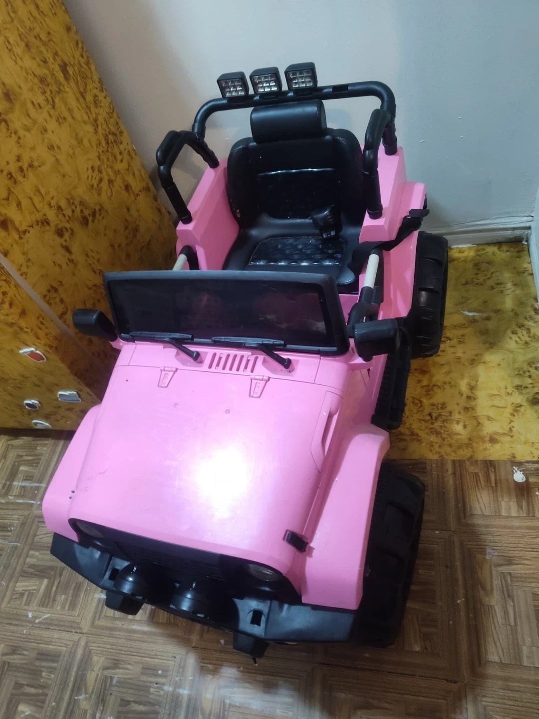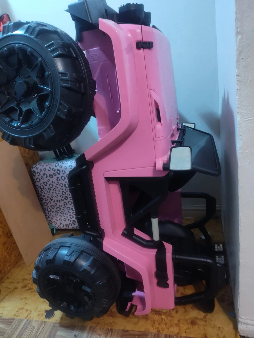 65Selling a pink ride-on Jeep for kids. It's in great condition and ready for a new driver! Perfect for outdoor adventures and imaginative play. The Jeep features sturdy construction and a fun design. Remote controlled And can drive it as well