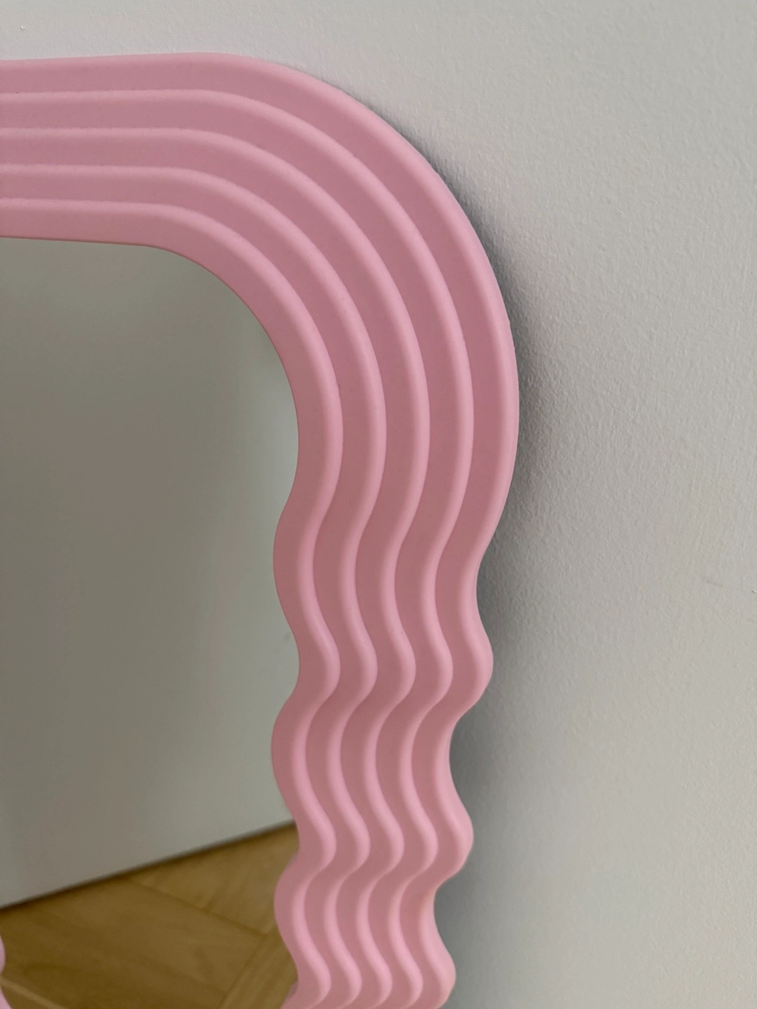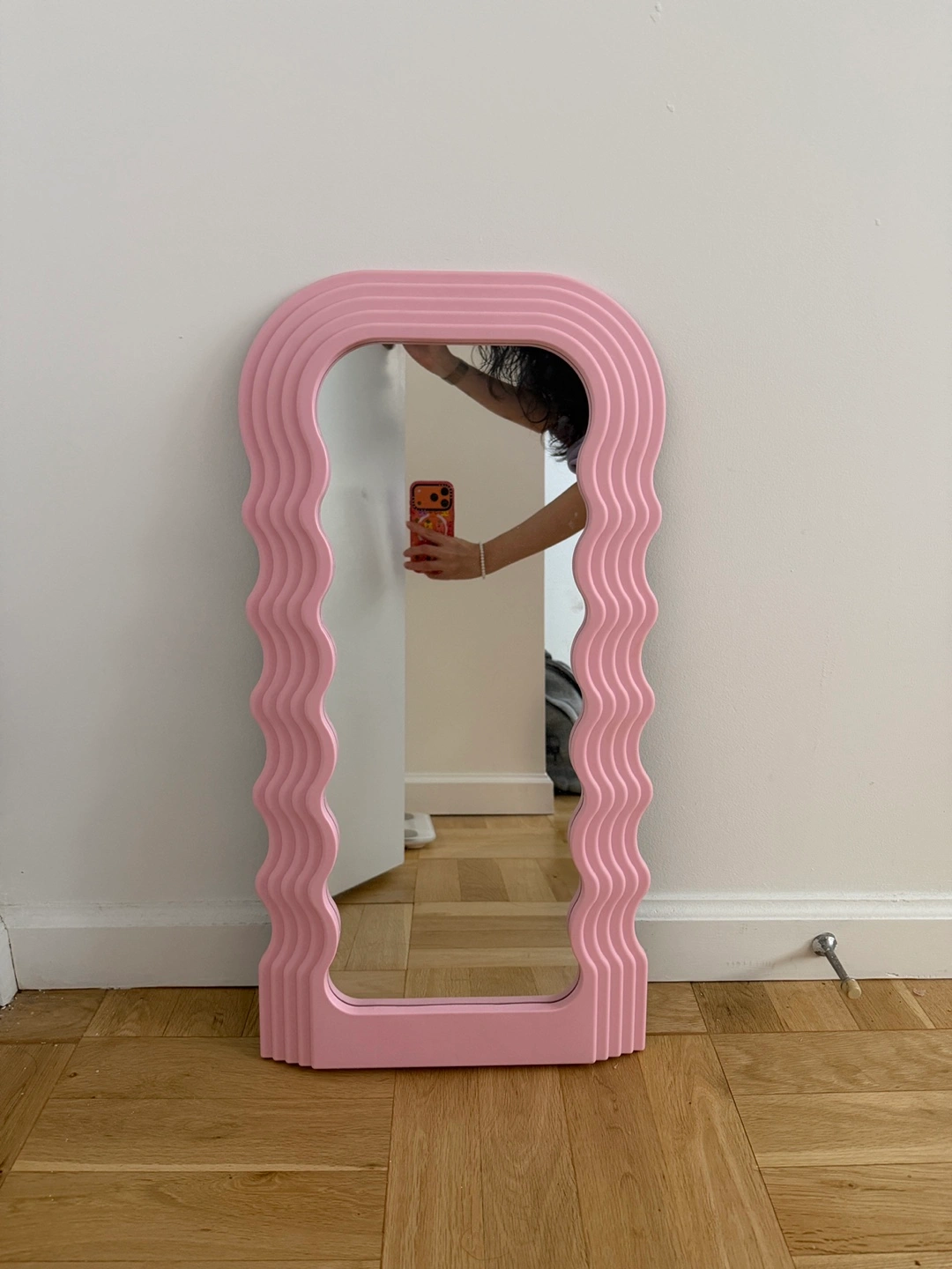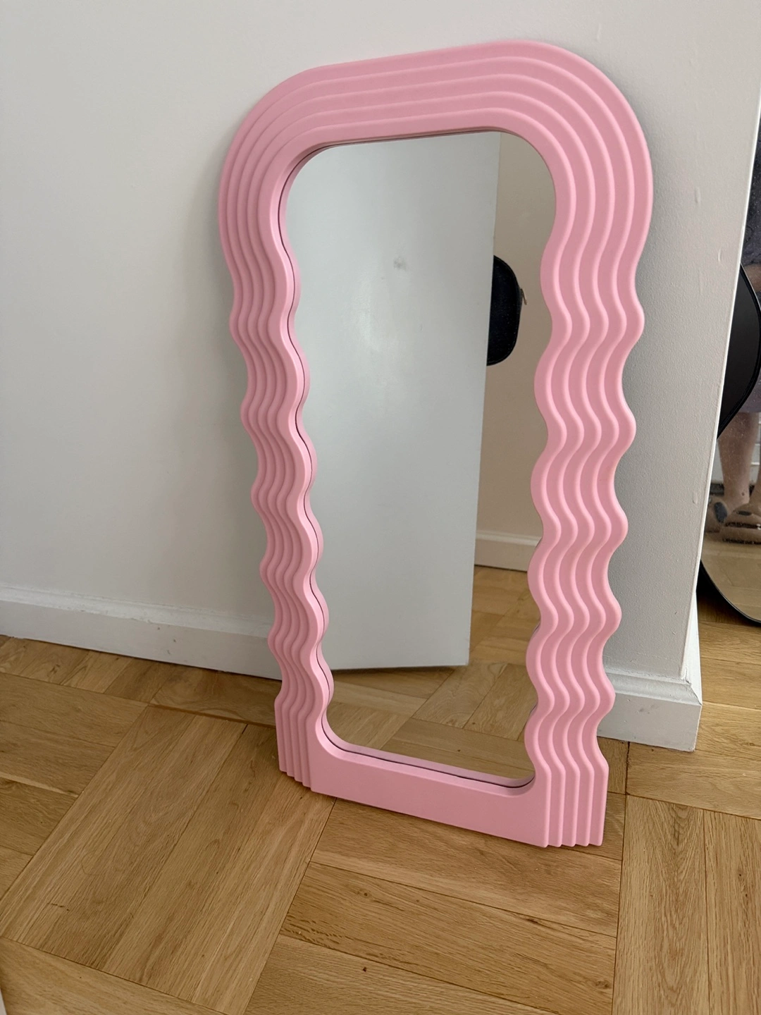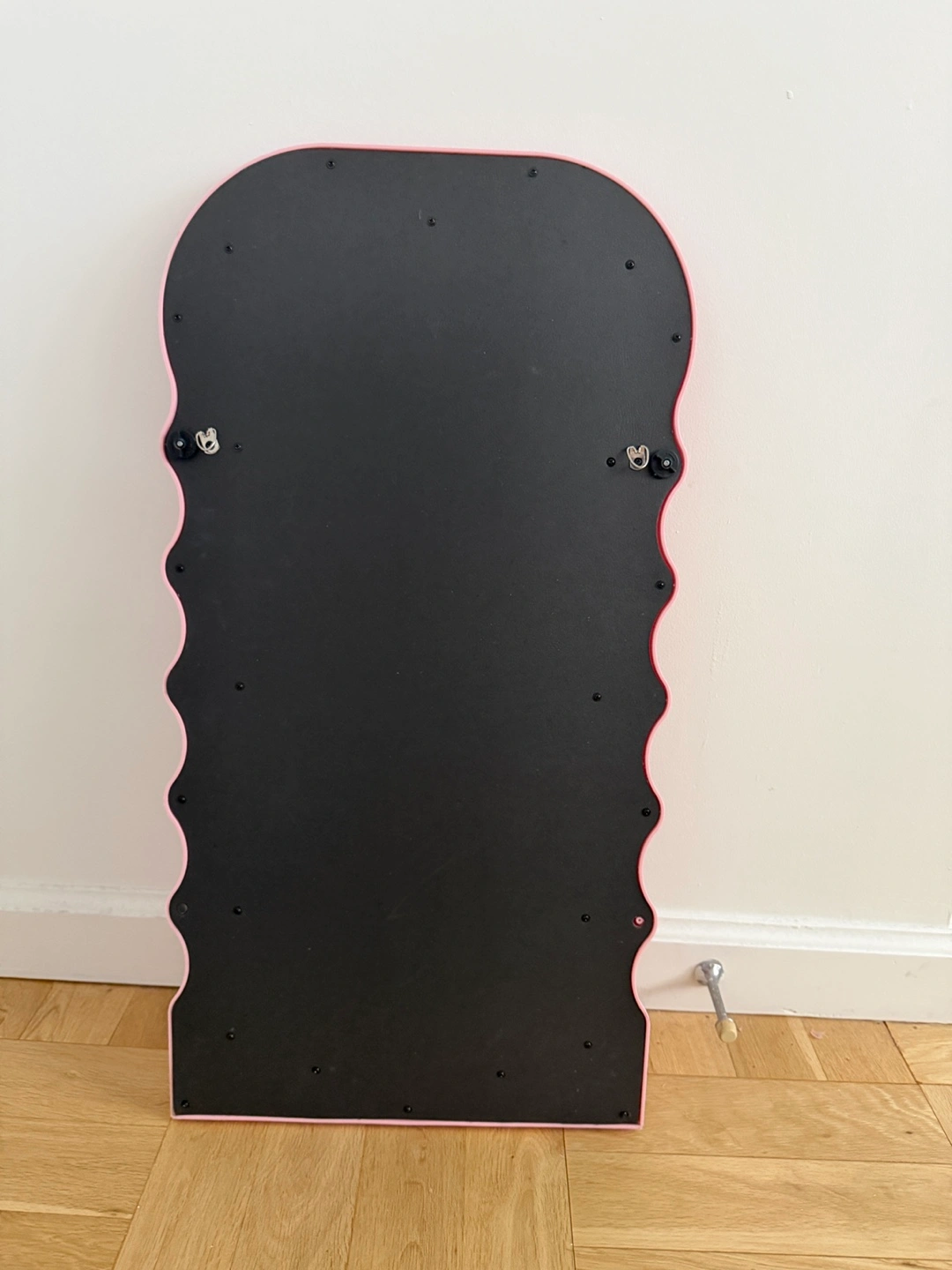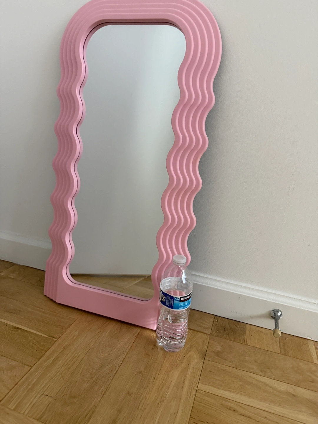 Moving sale! Just used 1 year Add a touch of whimsy to your space with this fun pink wavy mirror! It's in great condition and ready to brighten up any room. Perfect for adding a unique and playful vibe to your home decor