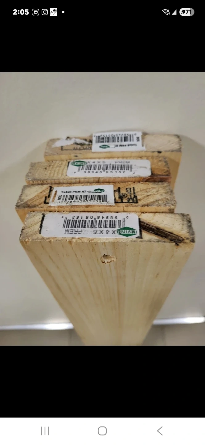 lumber/ woods made by Irving (J.D. Irving, Limited), specifically Premium (PRM) Eastern White Pine boards that have been Heat Treated (HT).