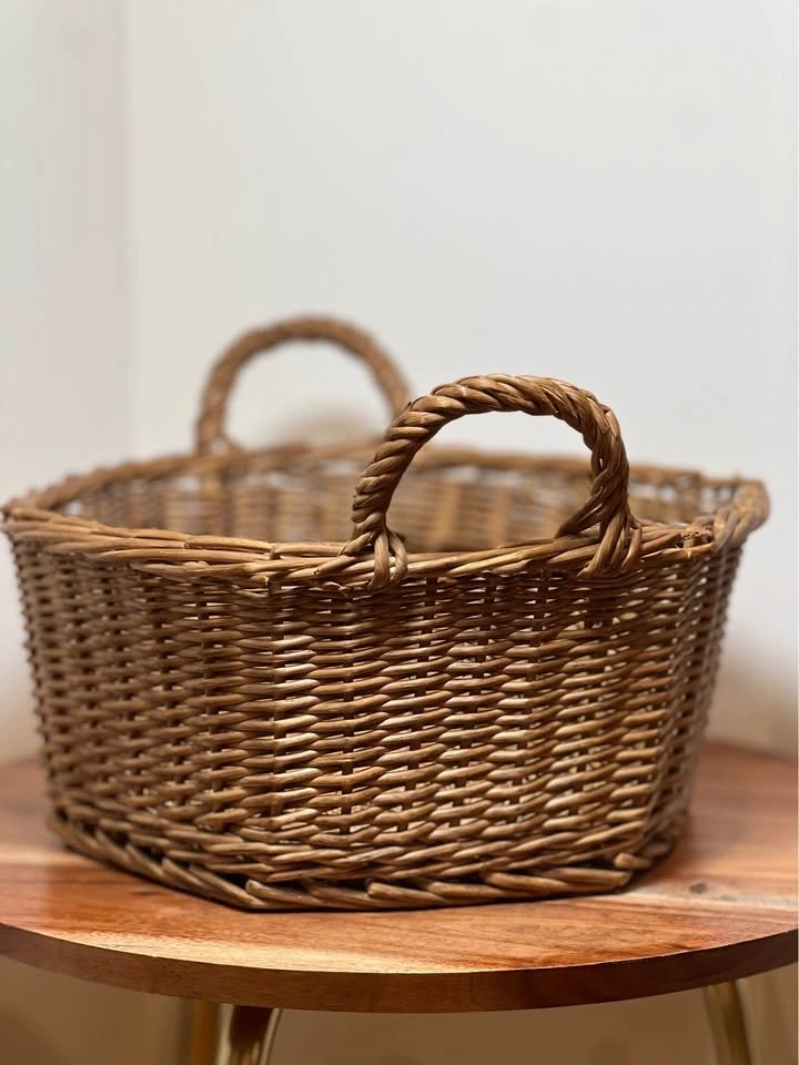 Woven Wicker Basket with Handles – Rustic Farmhouse Style