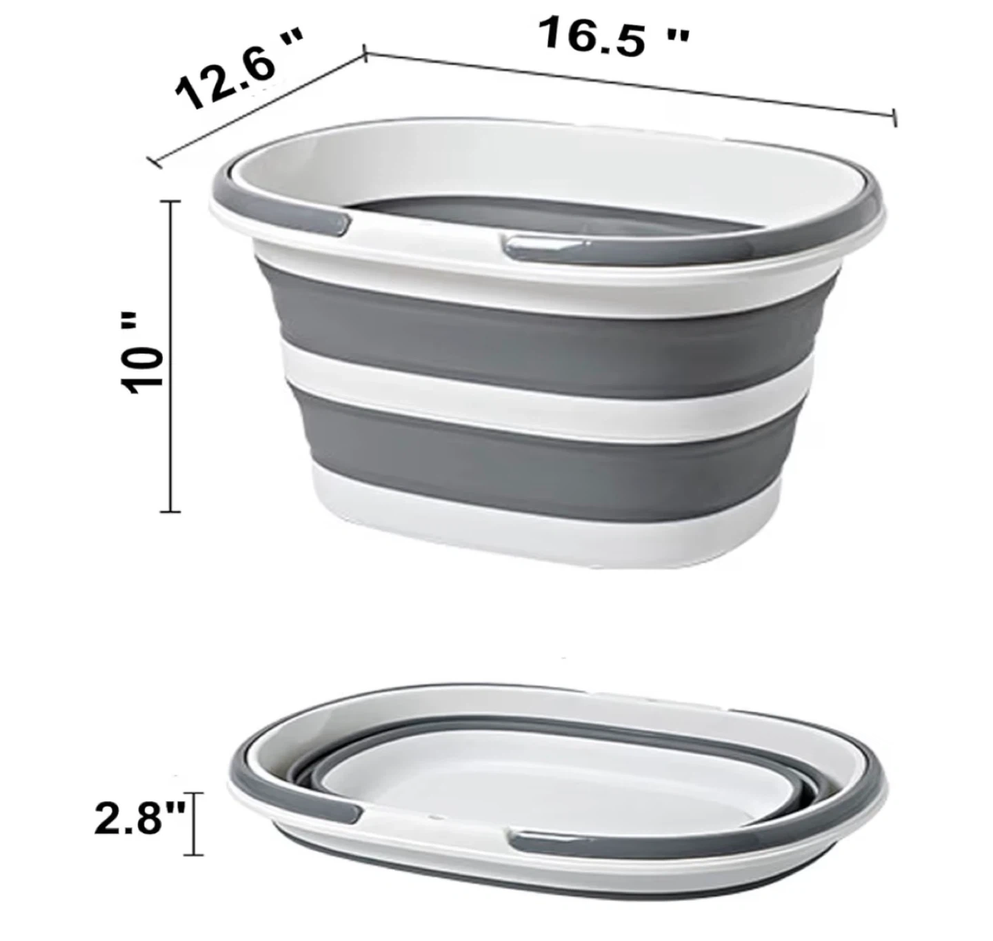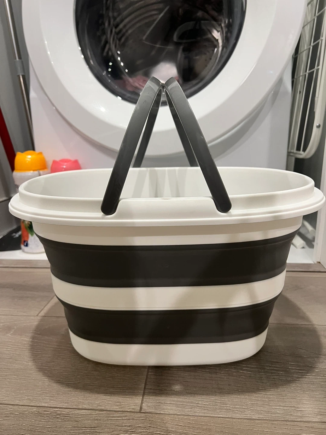 Selling a super practical collapsible bucket (Grey/White). It folds down completely flat, making it perfect for small apartments with limited storage. Collapses in seconds to fit under the sink, in a cabinet, or next to the washing machine.