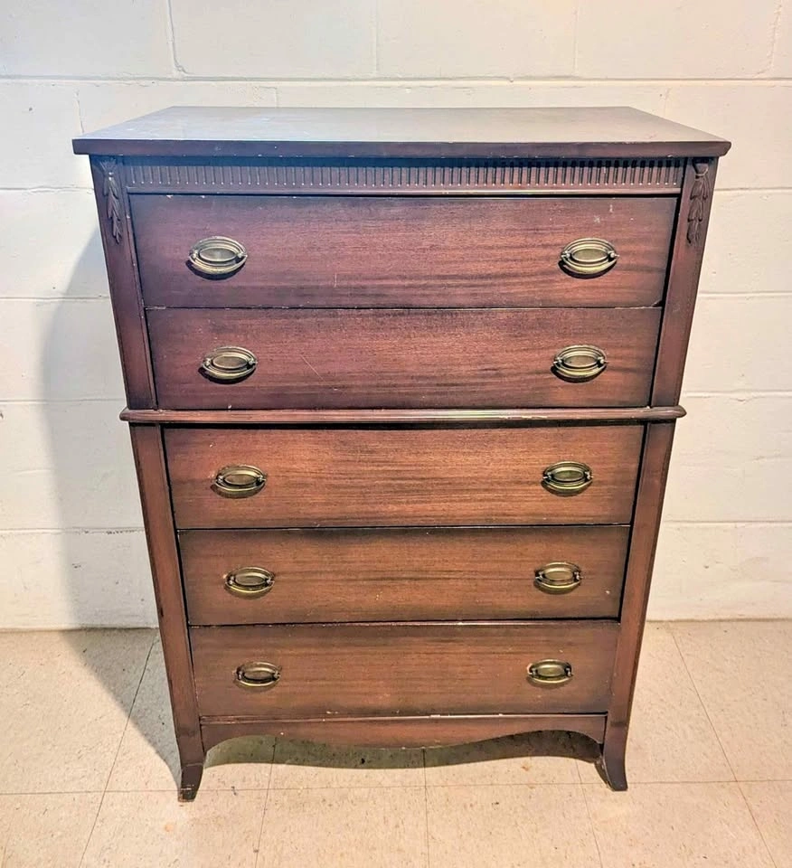 Vintage Mid-Century Neoclassical 5 Drawer Dresser