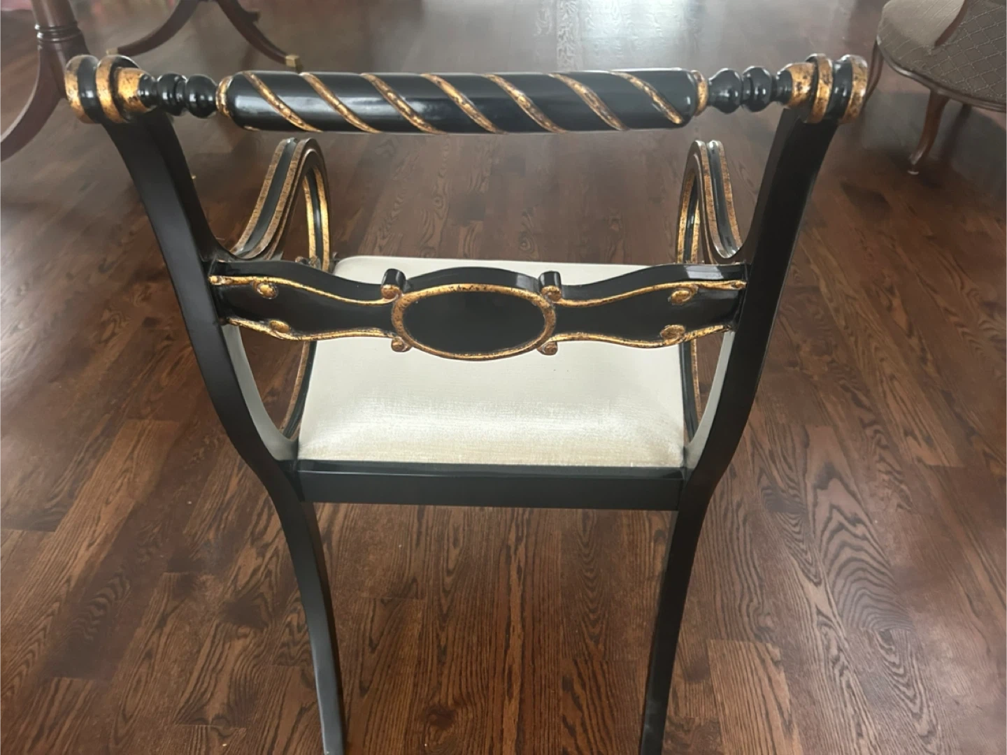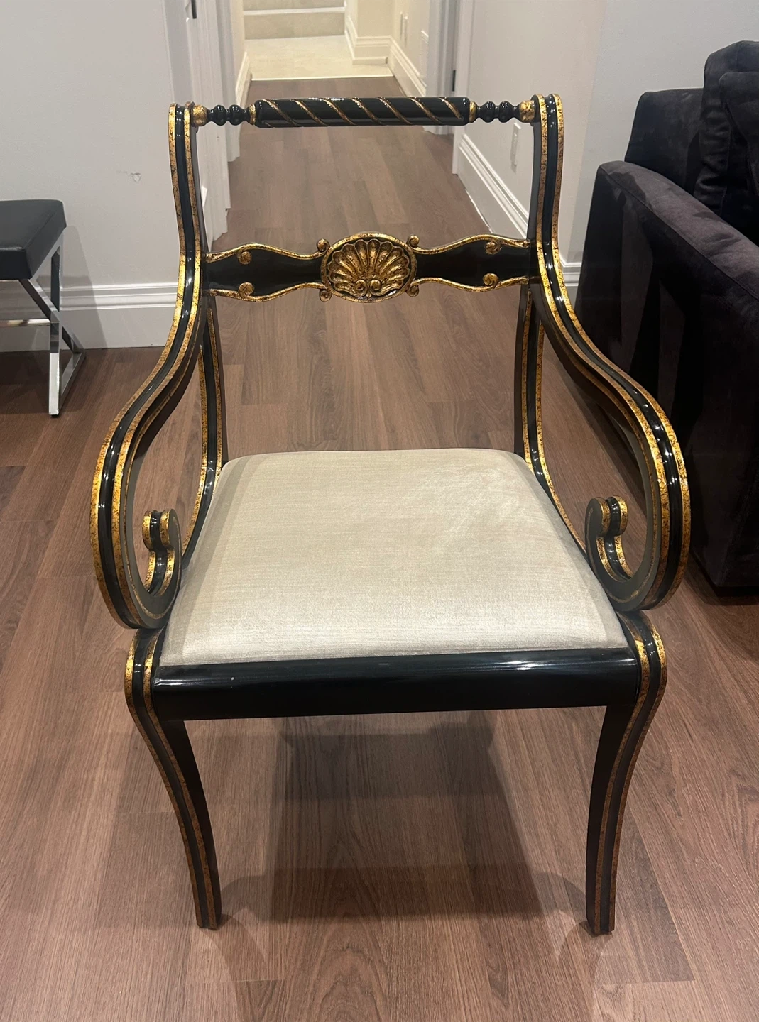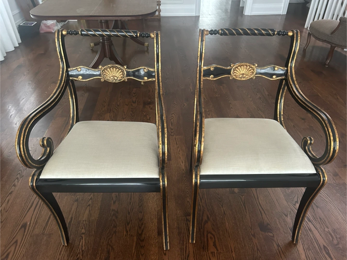 Pair of Black and Gold Arm Chairs