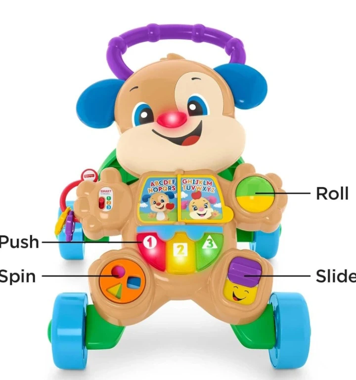 This Fisher-Price Laugh & Learn puppy walker is designed to help your little one stand and walk. It has multiple interactive activities and lights up as they move. The smart stages technology adjusts the learning content as your child grows.