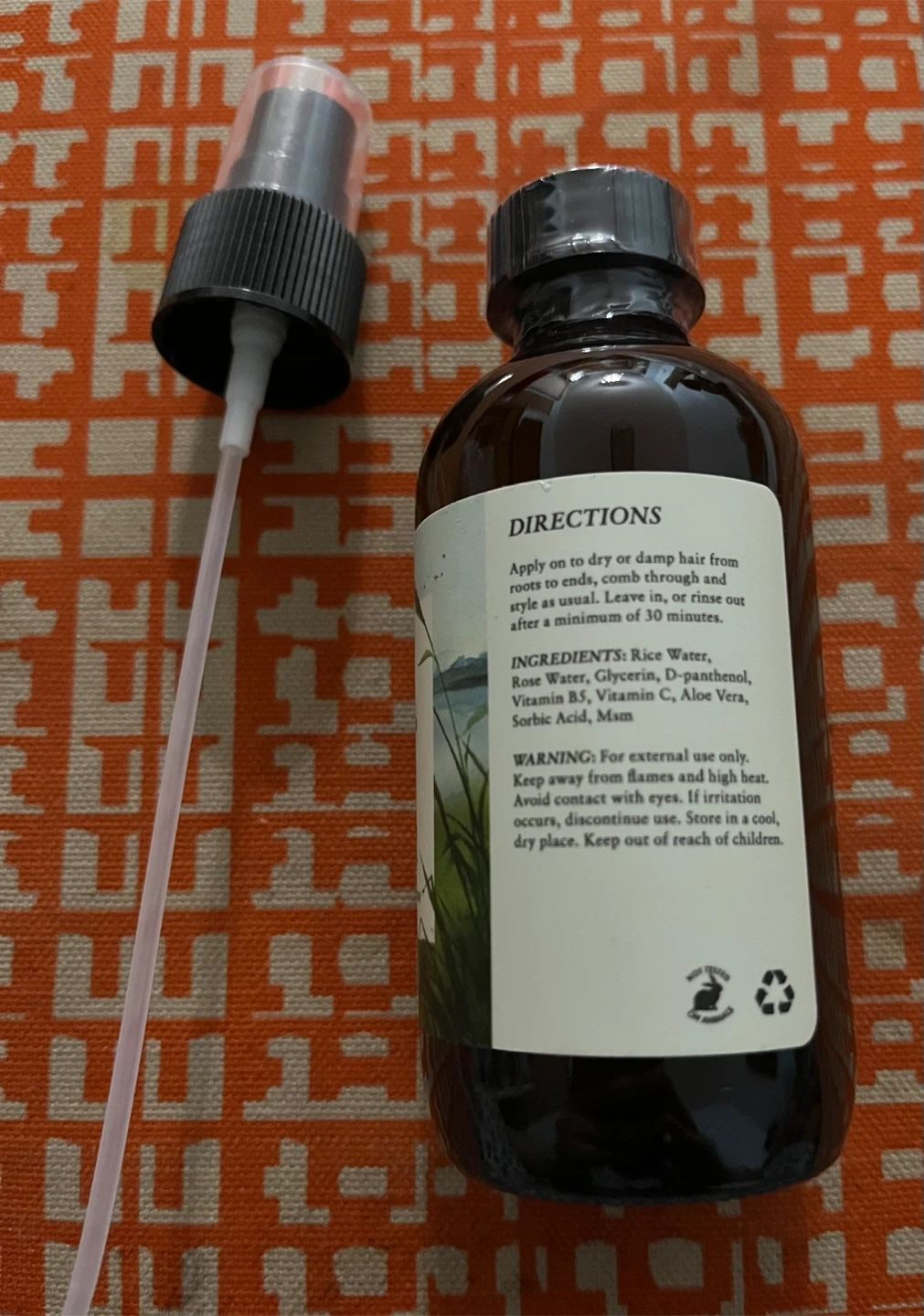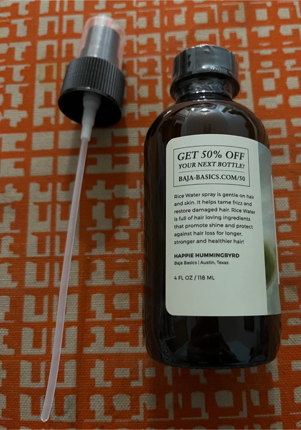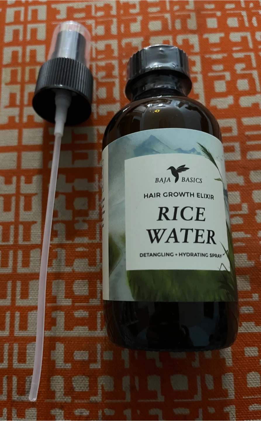 Baja Basics Rice Water Hair Growth Elixir is a detangling and hydrating spray. It's formulated with rice water, rose water, and vitamins. EXP-04-2026.