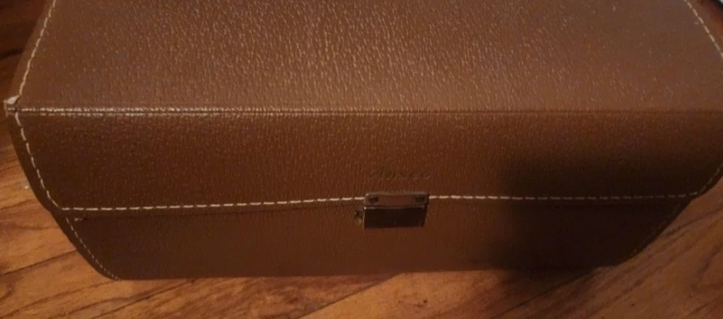 Vintage Emdeko 8mm movie camera. It's a Reflex Zoom Automatic Electric Eye model EM 5000. Includes the original leatherette carrying case and a lighting accessory. Great for film enthusiasts!