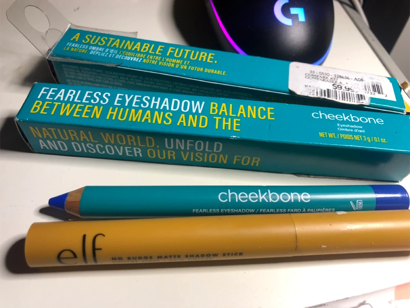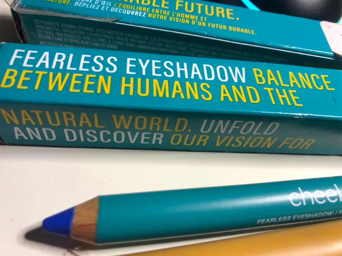 ⭐️🌟FREE 🧡✨ ONE NEW Cheekbone Beauty Fearless Eyeshadow and ONE NEW e.l.f. No Budge Matte Shadow Stick. The Cheekbone eyeshadow is in the colour Colbalt blue, and the e.l.f. shadow stick is in the colour Vintage Suede. The original price for the Cheekbone eye pencil was $9.95. Great way to try out some new colours!