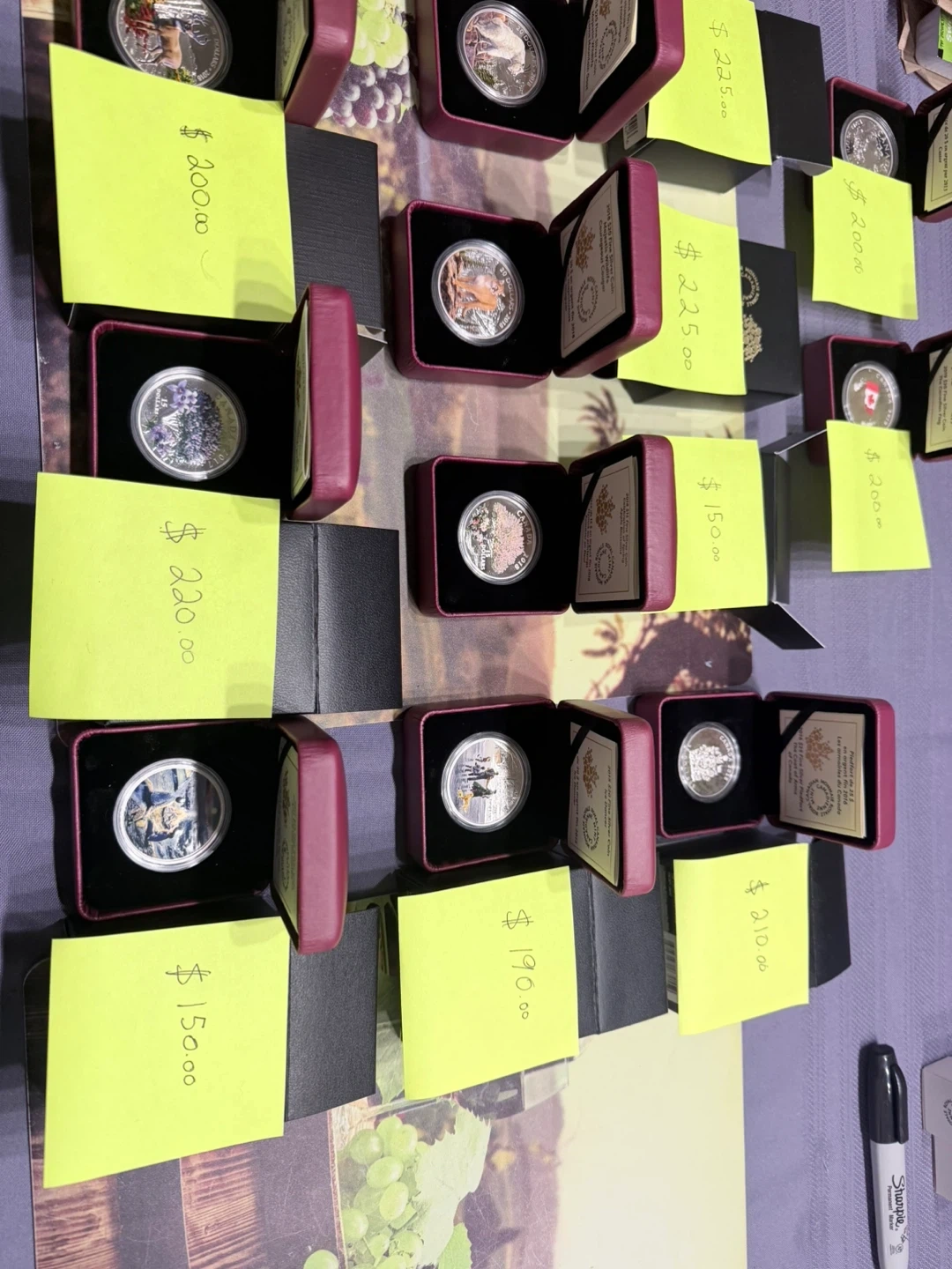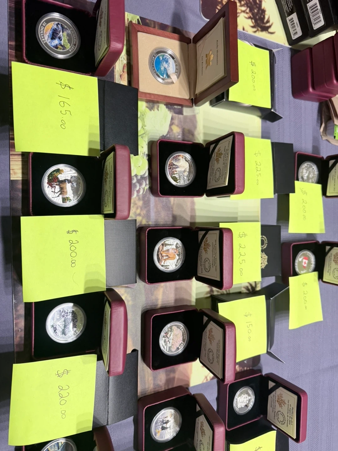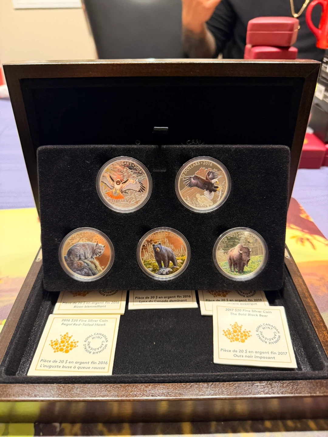 This is a collection of Royal Canadian Mint fine silver coins. It includes coins from 2016, 2017, and 2018, featuring various wildlife and anniversary themes. Each coin comes in its own display case and some have outer packaging.