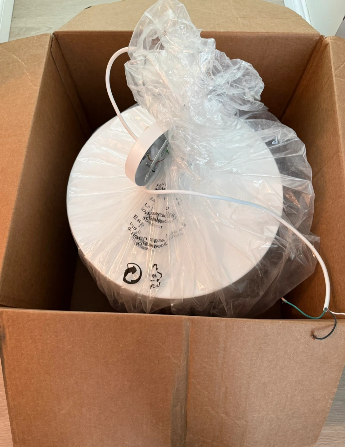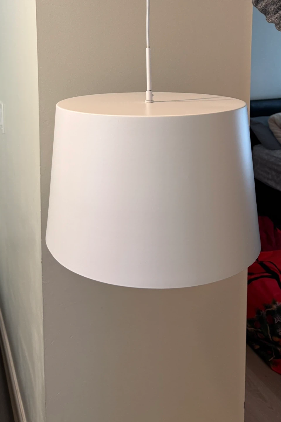 Kate by Maxilite - Drum Pendant Light - White Matte - 46 cm diameter x 28 cm height - Almost new (installed but removed right away because it’s too big for our kitchen). Seating at our indoor storage for about a year now. Still inside the box. - No scratches - Includes a standard base bulb - Selling for $297 at Mapple Ridge Lighting, but can be yours for just $30. Pickup at Atlin Place, Coquitlam