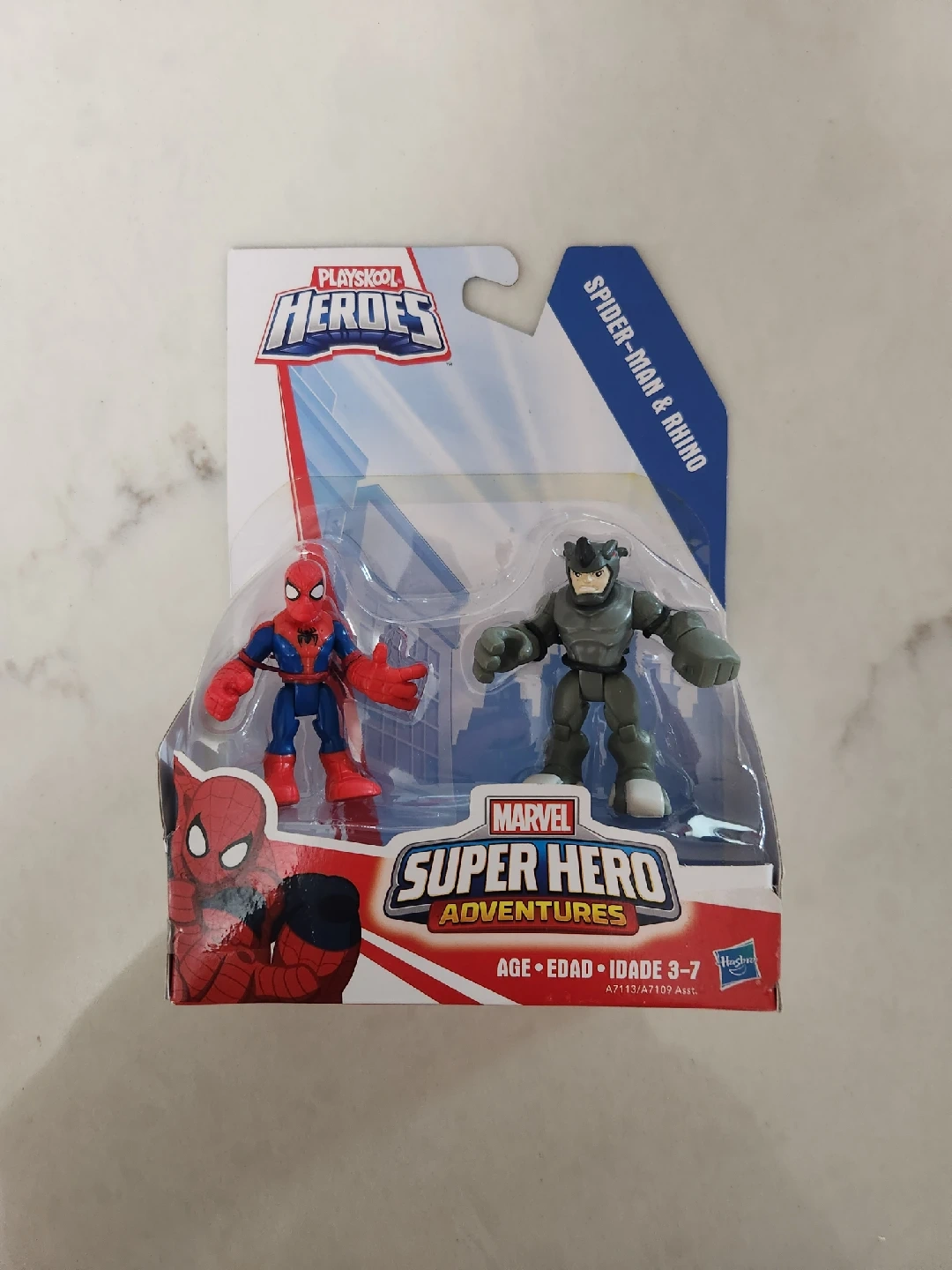 10Selling a Playskool Heroes Marvel Super Hero Adventures set featuring Spider-Man and Rhino figures! This set is perfect for ages 3-7 and is ready for new adventures