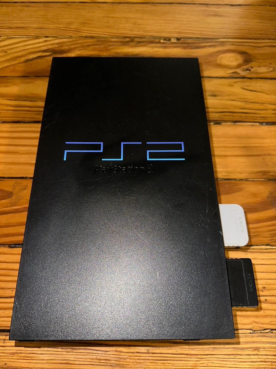 16PS2 Fat model. Tested and works. Includes memory cards. Plays DVDs and PS1/PS2 games. Classic retro console. Pickup only