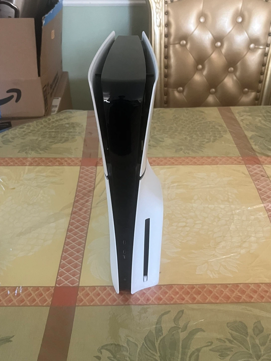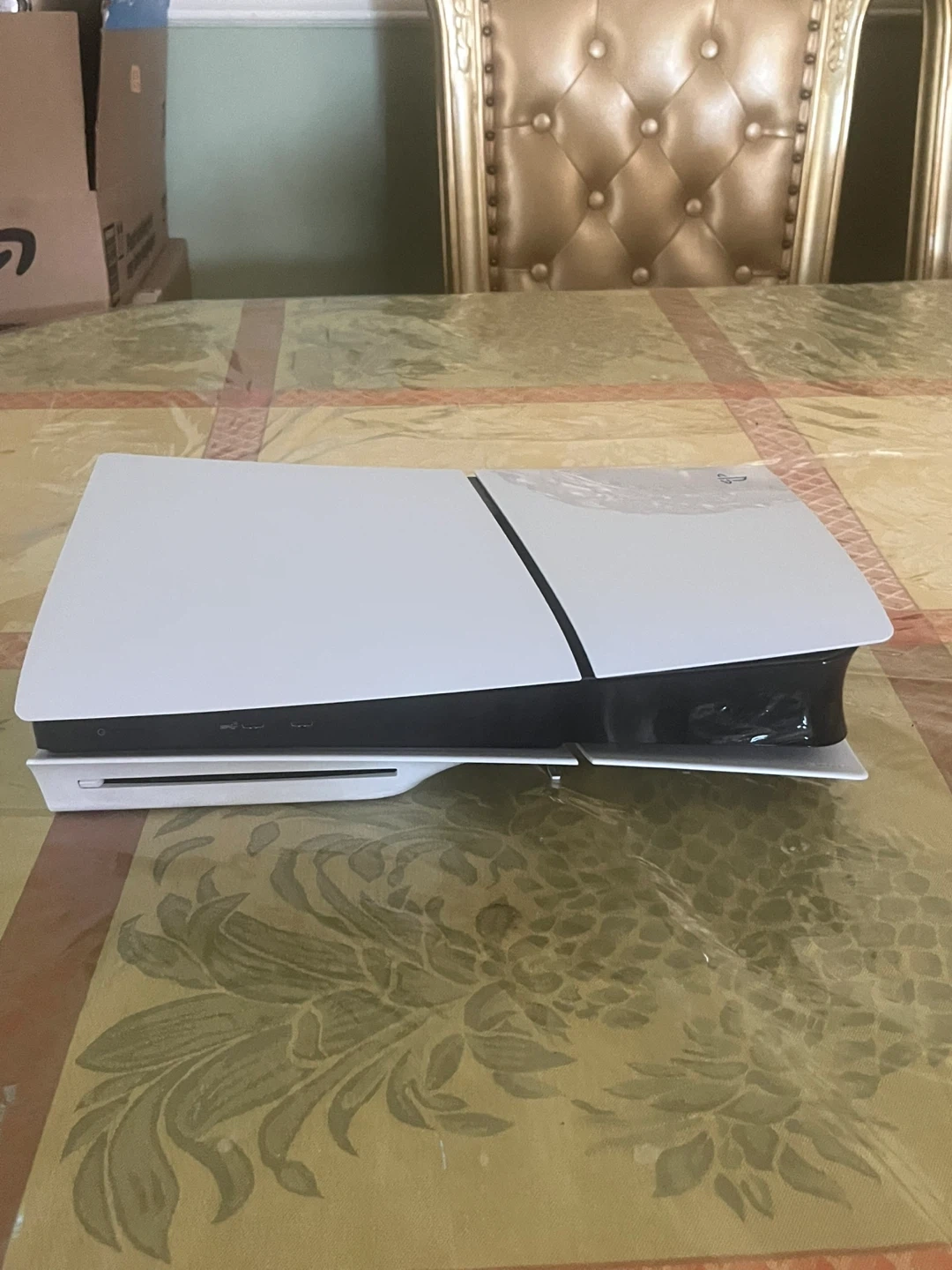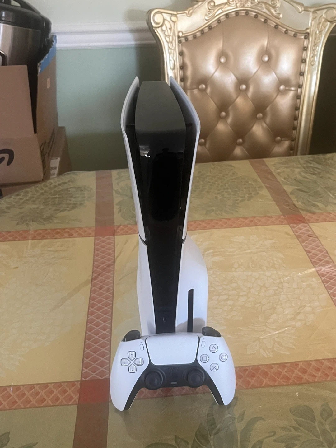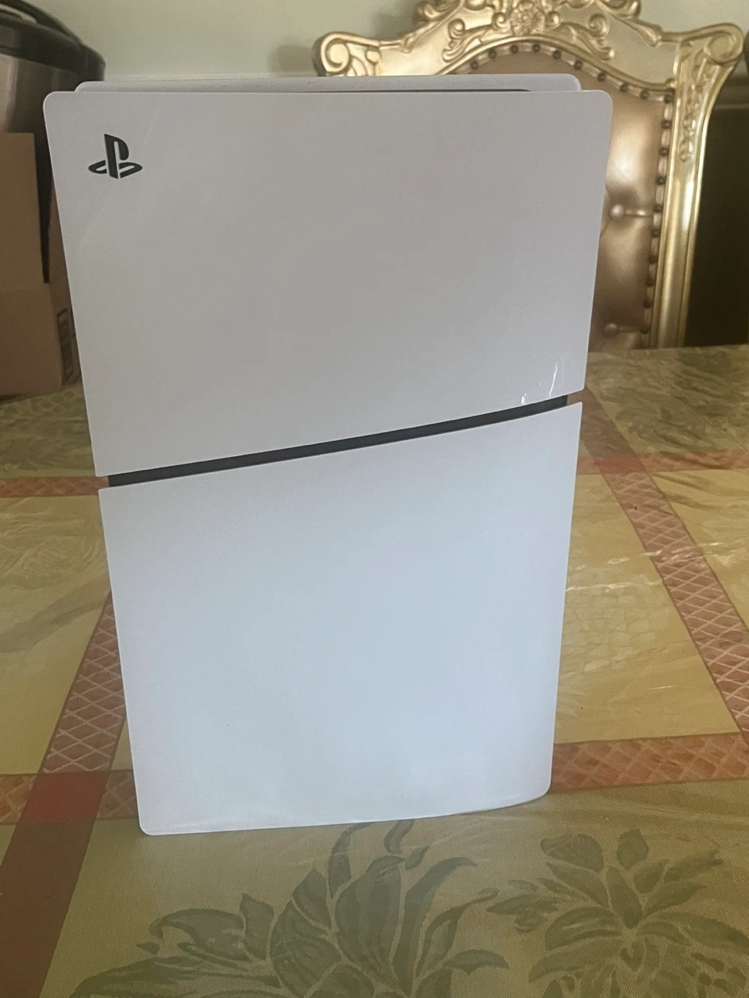 Selling a gently used PlayStation 5 Slim Disc Version, only about 6 months old and in excellent condition. Runs perfectly, with no issues. This is the latest slim model, offering the same powerful performance as the standard PS5 in a more compact and sleek design. Features: • Supports physical game discs and Blu-ray movies • 4K gaming with ultra-fast load times via the SSD • Backward compatible with most PS4 games • Includes the DualSense wireless controller with haptic feedback and adaptive triggers This system is perfect if you’re looking for a nearly new PS5 without waiting for retail restocks.