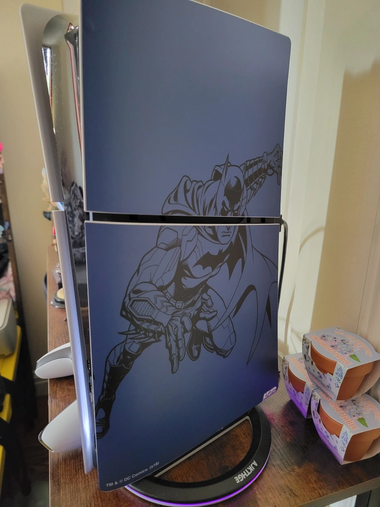 Selling a PlayStation 5 with a Batman skin barely used. It comes with a stand. Does not come with the box. Will also throw in a second controller in Cosmic Red. *** Firm on price and no trades. Pick up only ***