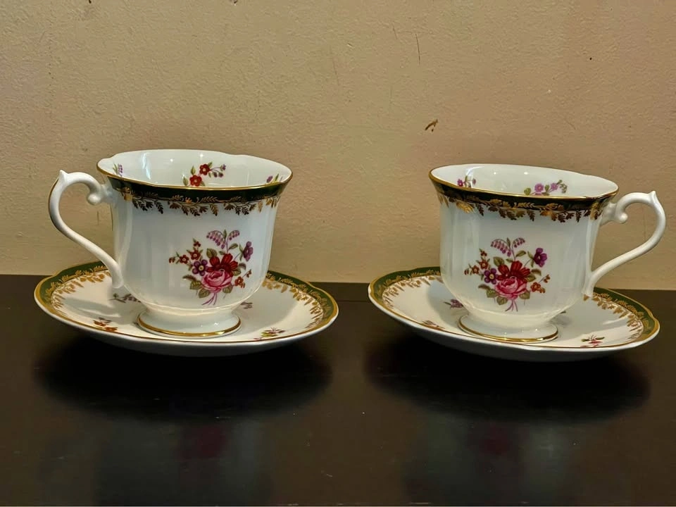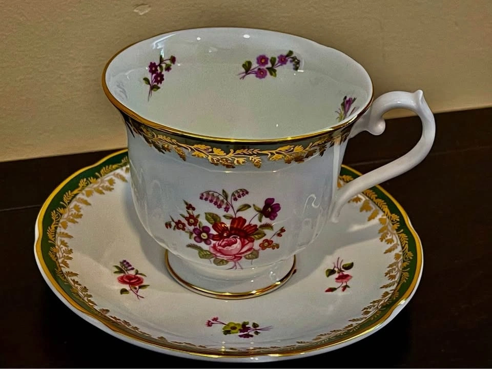 Denby Rockingham Green & Gold Tea Cup & Saucer - Pink Roses - $1