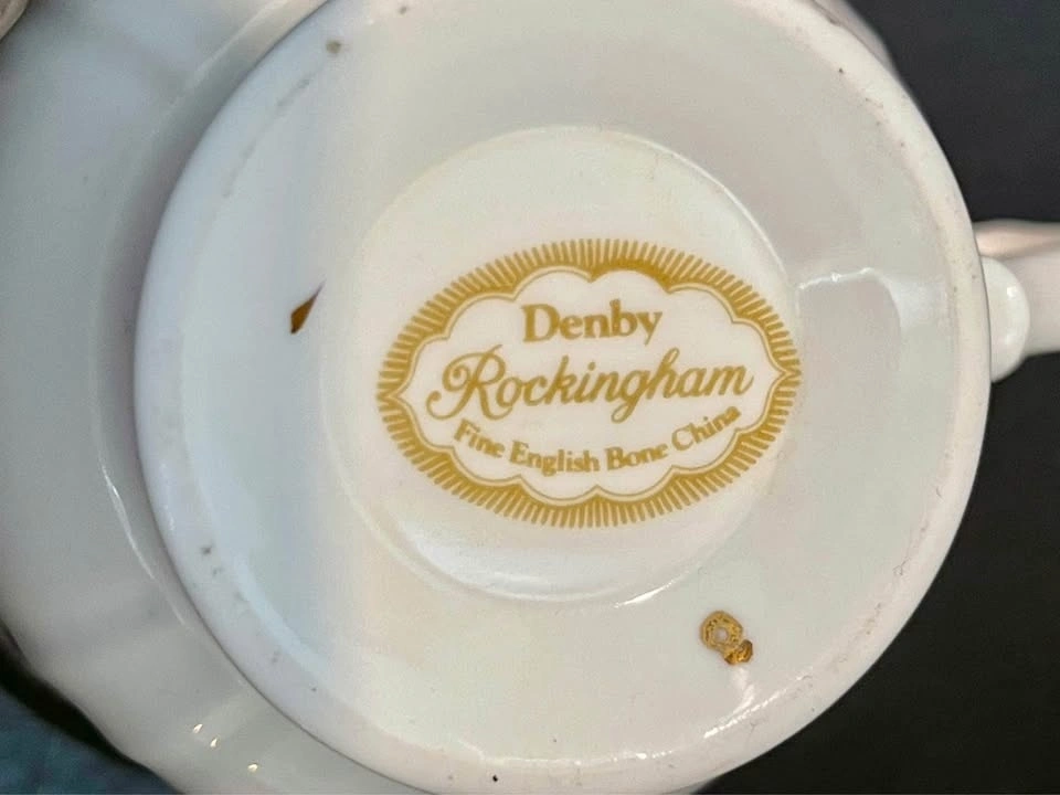 Porch pick up Eglin and Dufferin. Selling two sets together. Vintage from the 1930s. This Denby Rockingham English tea set features gold filigree trim and beautiful pink rose and floral sprays. The set is in excellent condition, with no chips, cracks, or crazing.