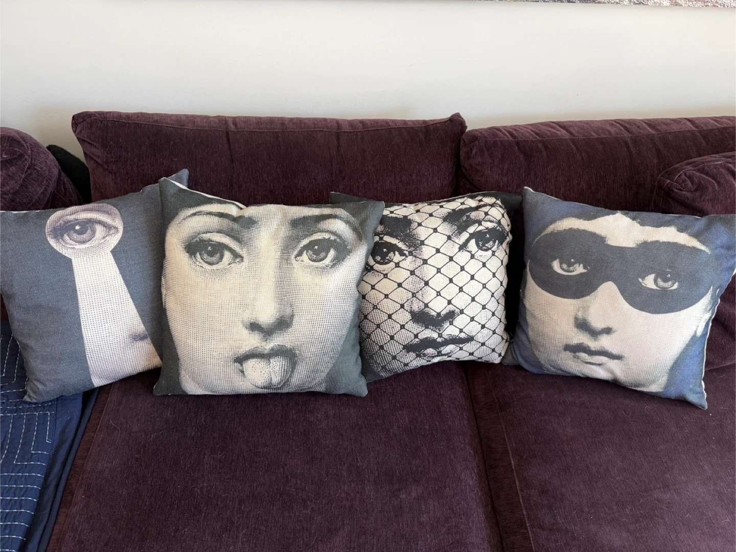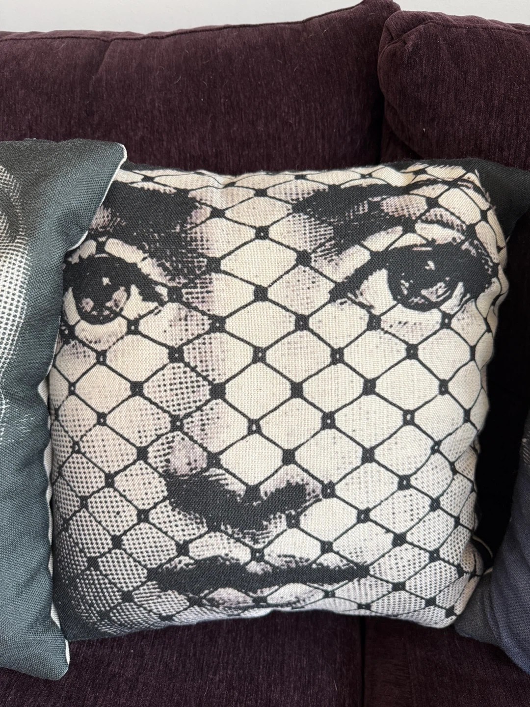 Selling a set of 4 decorative throw pillows with Fornasetti-style face prints. These unique pillows will add a touch of artistic flair to any room! They are in great condition, freshly washed and ready to go!